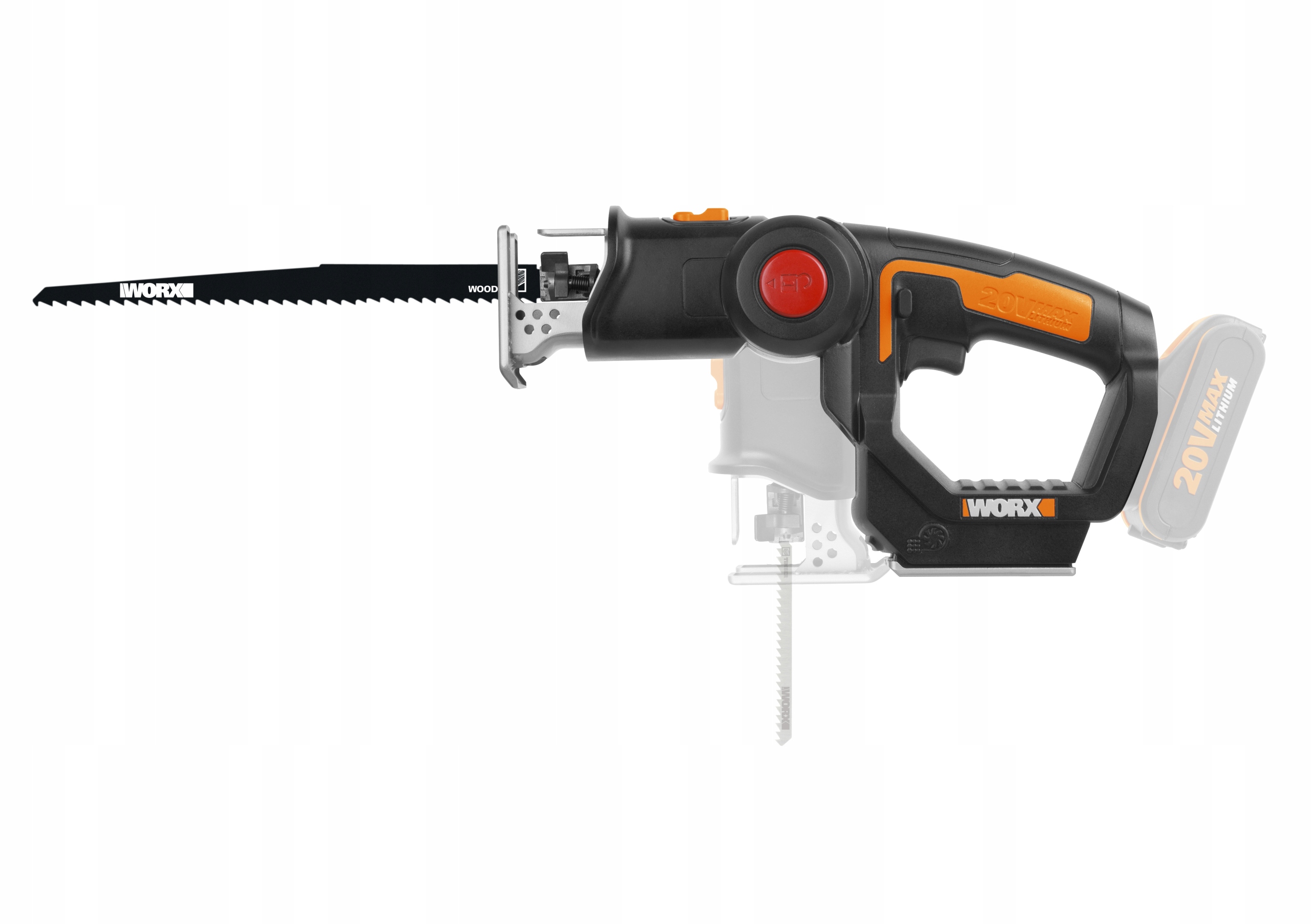 Беспроводная универсальная пила WORX WX550.9 из серии Power Share, которая выполняет функции лобзика и сабельной пилы.
