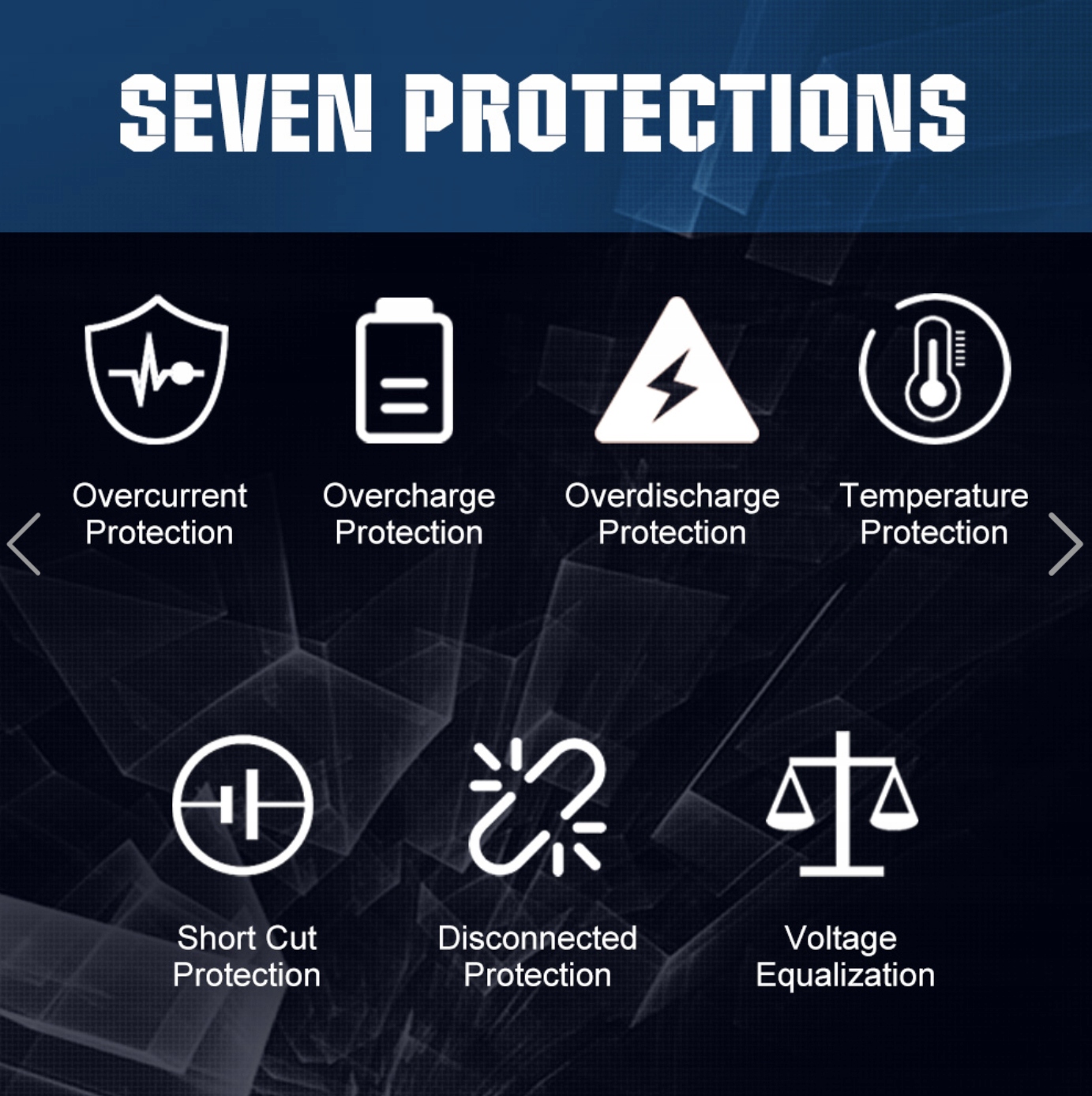 - Обладает интеллектуальным BMS с максимальным током разряда 25А