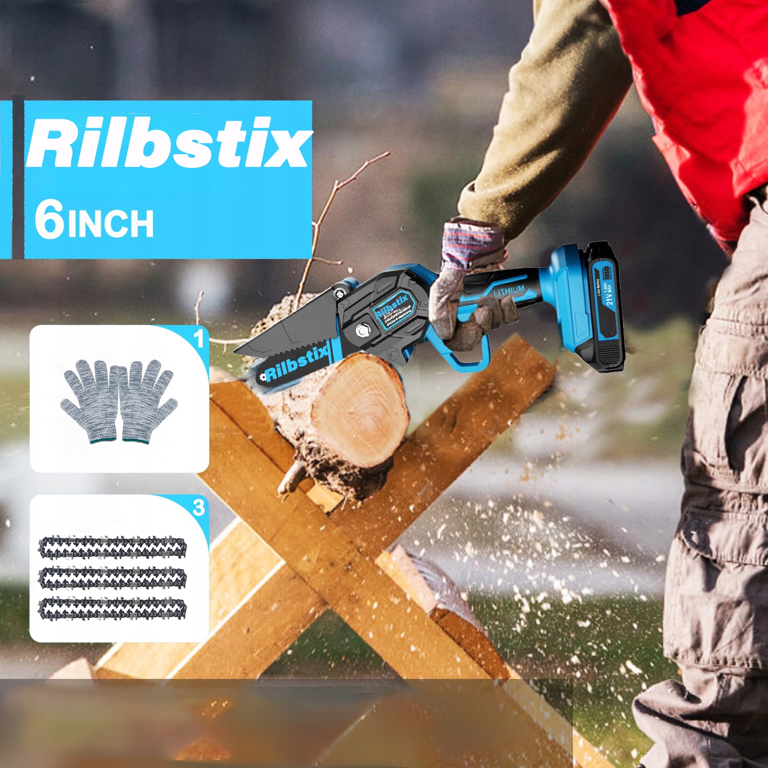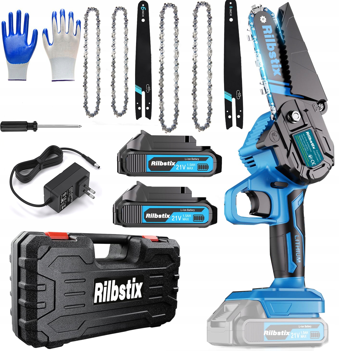 АККУМУЛЯТОРНАЯ ЦЕПНАЯ ПИЛА 2в1 БЕСЩЕТОЧНАЯ 6" + 8" С 2 АККУМУЛЯТОРАМИ И 4 ЦЕПЯМИ