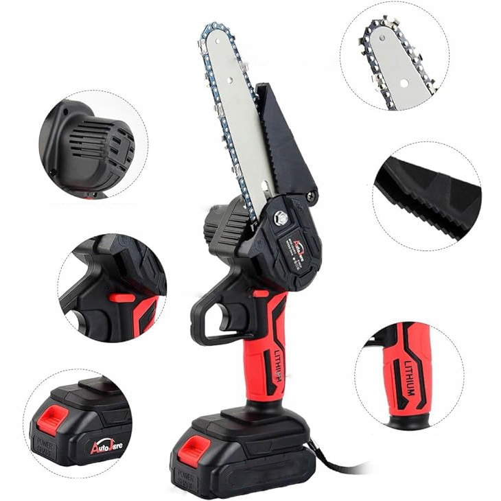 ⭐Мини-портативная бензопила/бензопила, 88 В, 2000 мАч, 2 аккумулятора, 4 цепи⭐