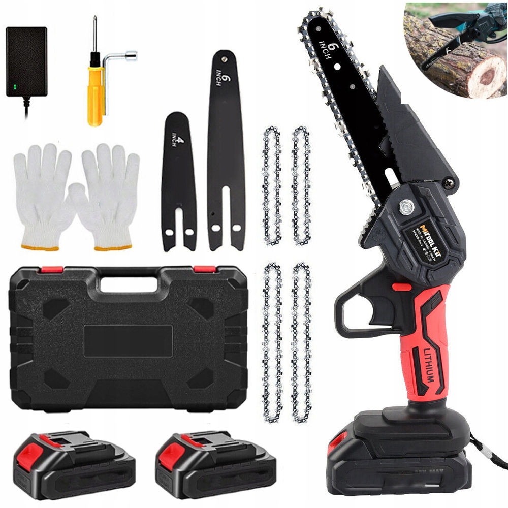 АККУМУЛЯТОРНАЯ ЦЕПНАЯ ПИЛА, 2 АККУМУЛЯТОРА 88 В, 2 ЦЕПИ 4"/2X6"