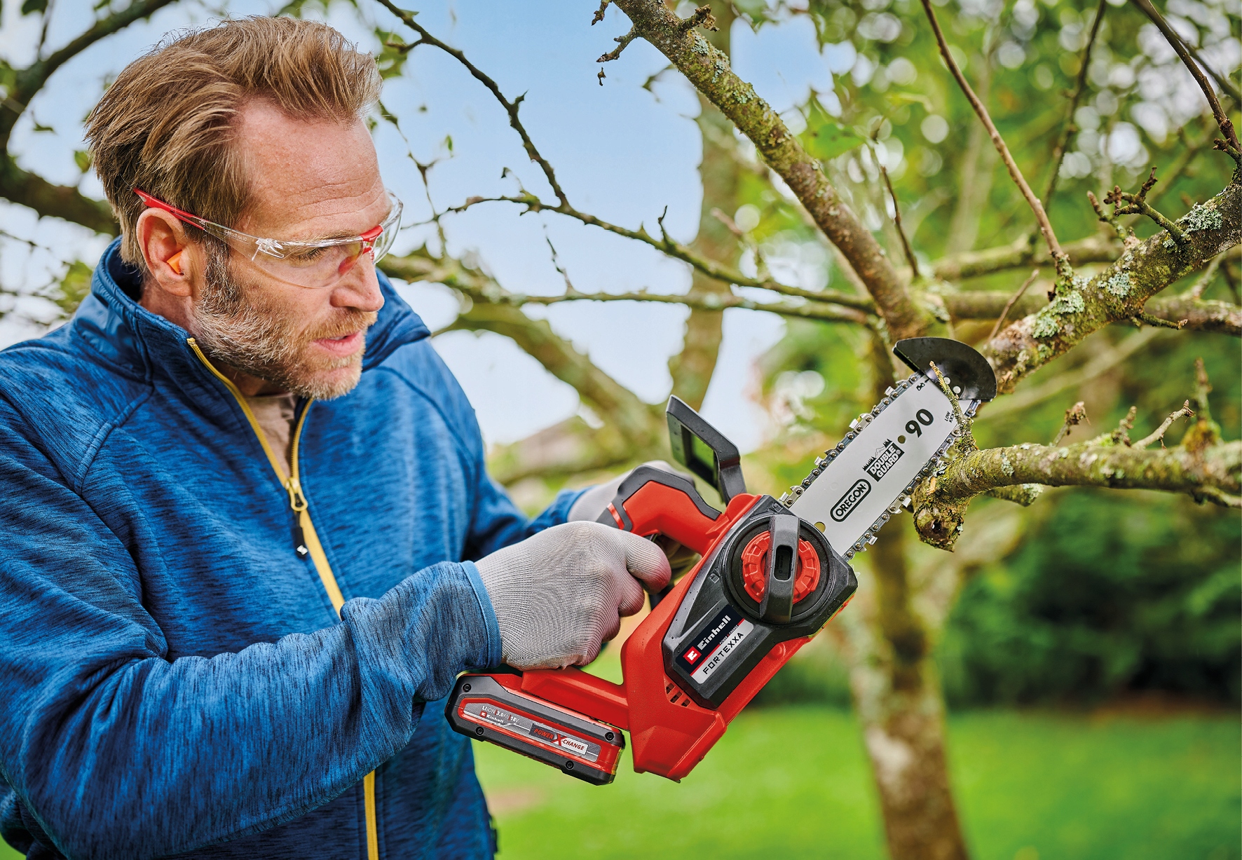 Оснащенная высококачественной шиной и цепью OREGON, одноручная аккумуляторная бензопила Einhell FORTEXXA 18/20 TH впечатляет своей долговечностью и чистым результатом резки. Замена цепи и установка оптимального натяжения цепи просты и не требуют использования инструментов. Защита наконечника на конце меча обеспечивает высокий уровень безопасности, поскольку предотвращает проникновение в древесину. Это сводит к минимуму вероятность отдачи.