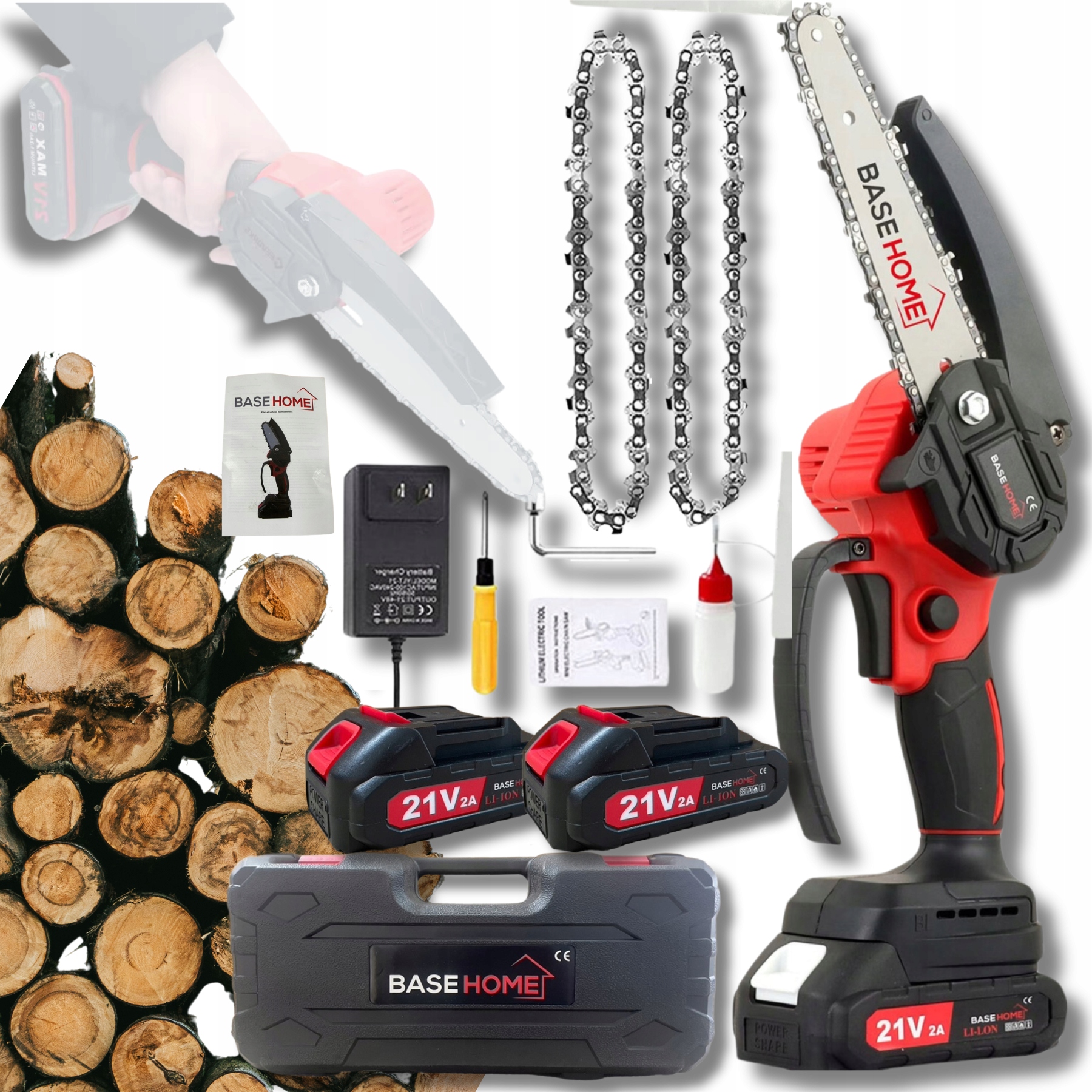 АККУМУЛЯТОРНАЯ Бесщеточная бензопила 6 дюймов, 2xBAKU 21V, 2xCHAIN