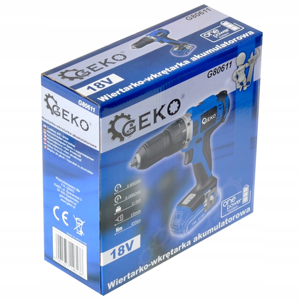 Аккумуляторная дрель-шуруповерт 18 В серии OnePower от известного бренда GEKO.