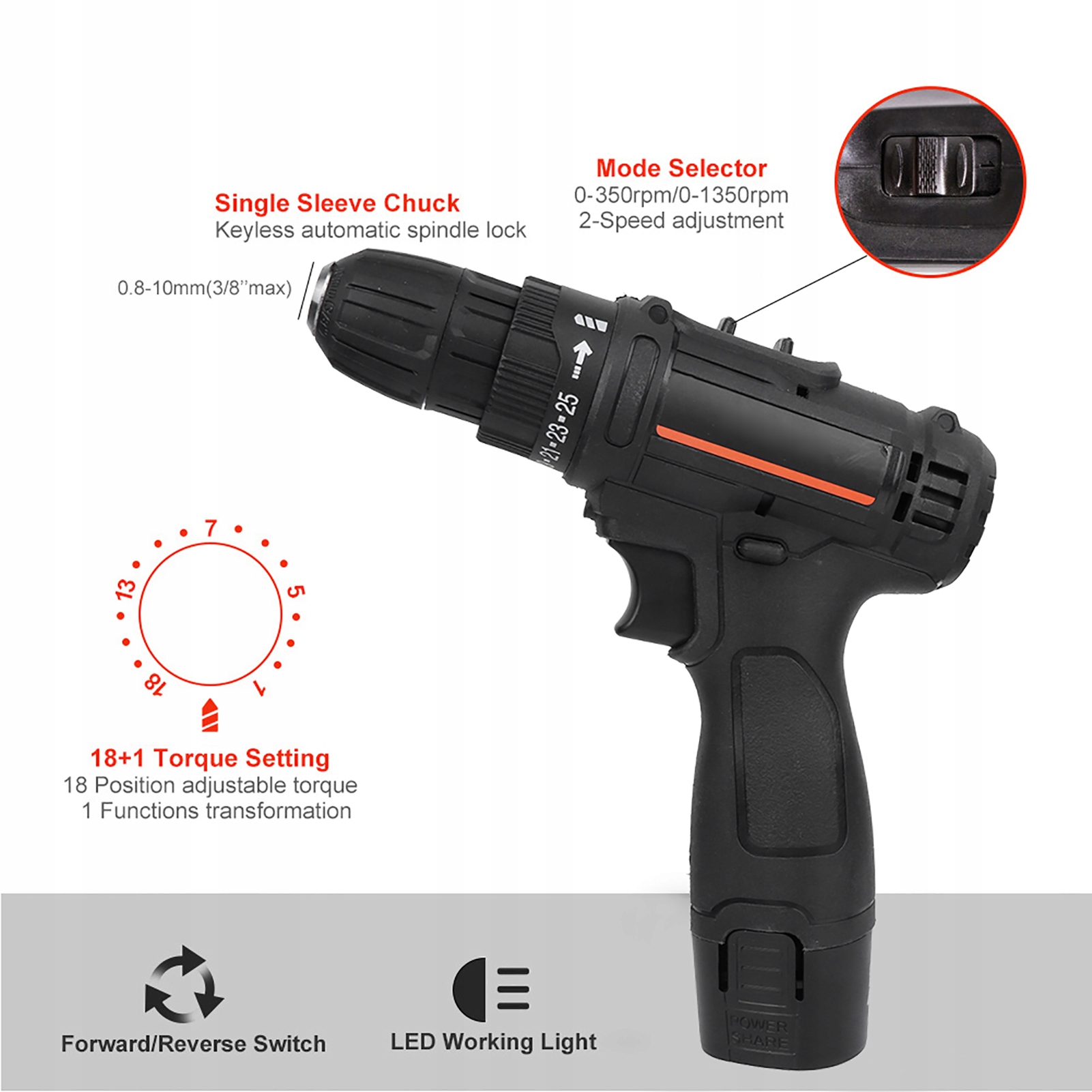 - Тип изделия: Аккумуляторная дрель