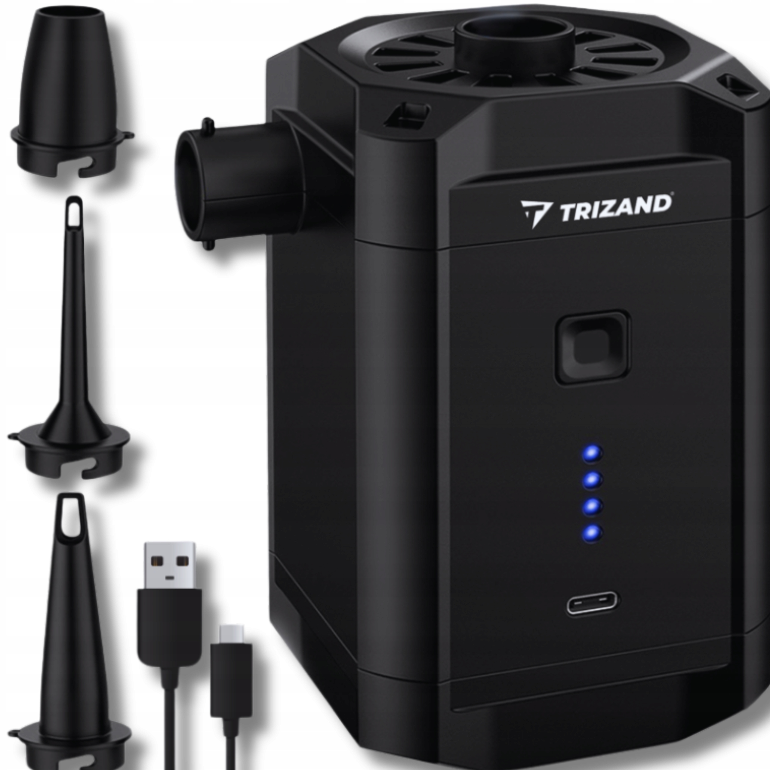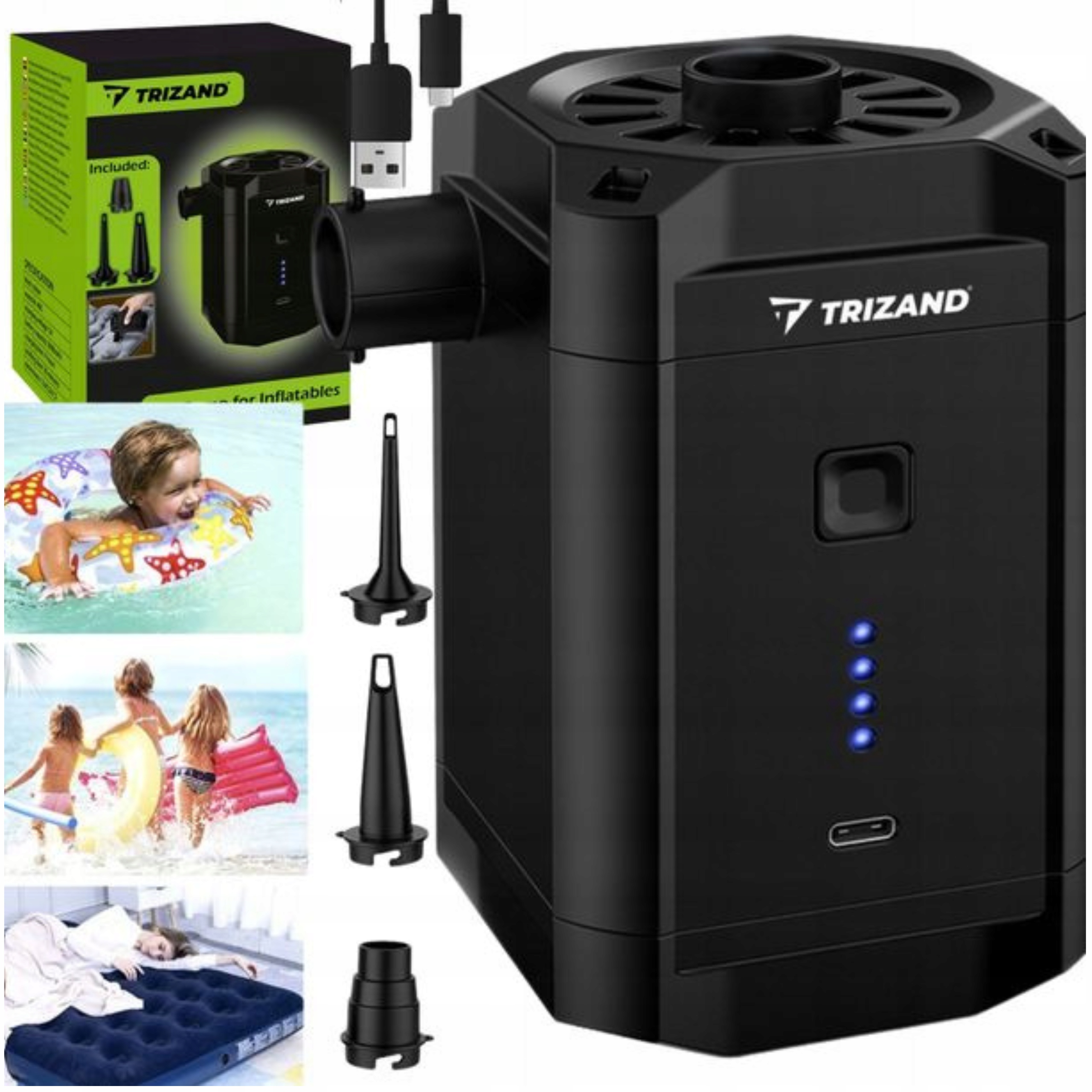<ул>Универсальный аккумуляторный насос — это устройство, которое удобно иметь с собой в походе или на пляже. Он не занимает много места, поэтому, когда он не используется, его можно легко хранить в сумке или рюкзаке. Насос имеет целых 3 разных насадки (диаметр 0,6/1,1/1,7 см), поэтому с его помощью можно надувать множество различных надувных аксессуаров, таких как матрасы, мячи, понтоны, надувные игрушки, бассейны. Насос для матраса изготовлен очень добротно, поэтому прослужит безотказно долгие годы. Заряжается через кабель USB Type-C.