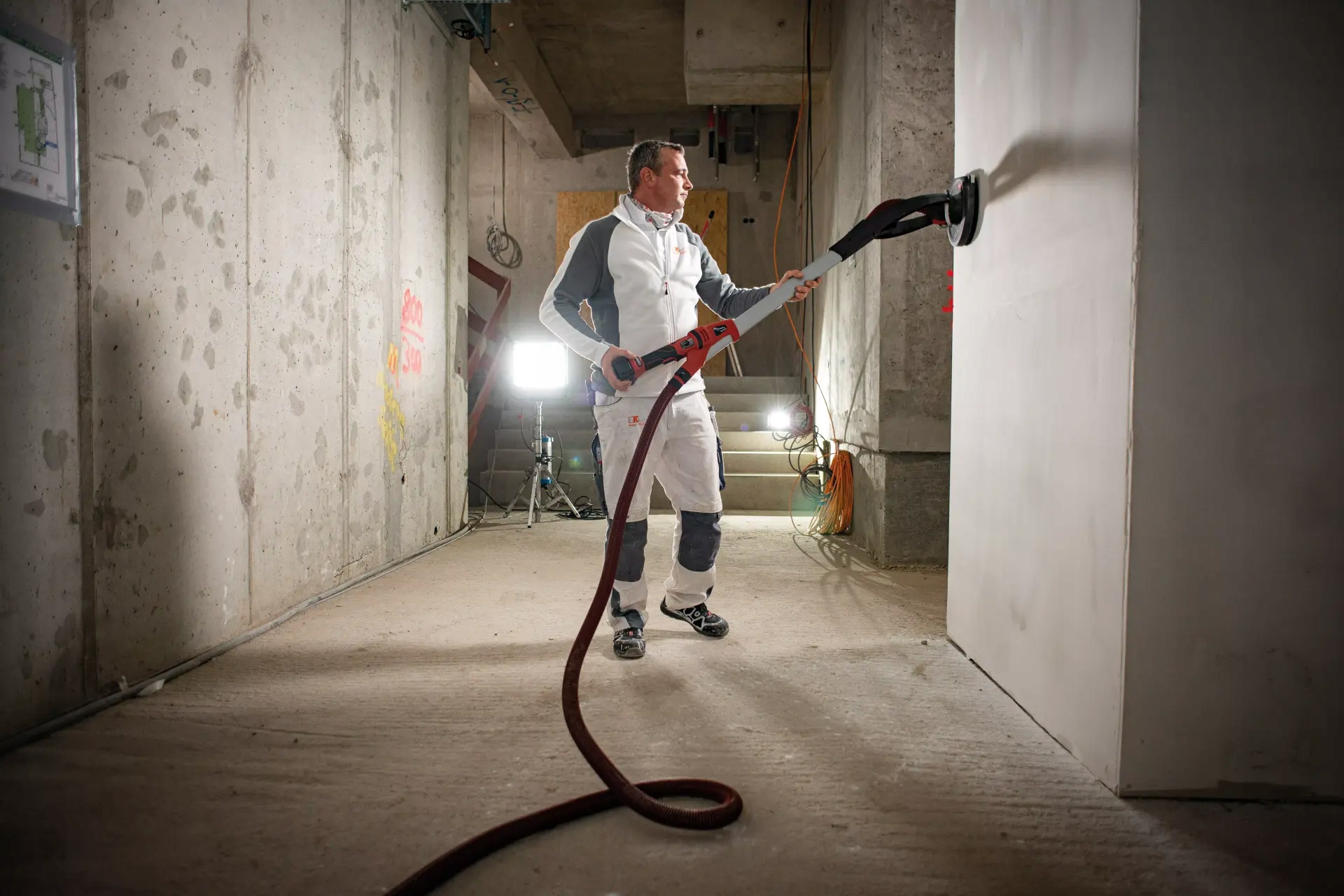 ✴ надежные силы передачи и высокая гибкость благодаря использованию гибкого вала привода от двигателя до шлифовальной пластины. Благодаря этой конструкции вес головы жирафа был уменьшен до минимума. Это значительно облегчает работу устройства ✴ Эффективное сосание между венком кисти и шлифовальной (круглой) шлифовальной пластиной предотвращает засорение шлифовального материала и обеспечивает эксплуатационную работу. Электронная система управления (EMS) защищает машину, расширяет срок службы и повышает эффективность