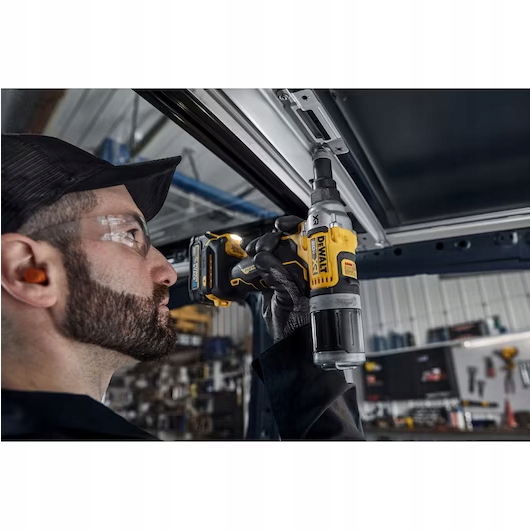 Заклепочник Dewalt DCF414NT — это эффективный аккумуляторный заклепочник с современным бесщеточным двигателем, работающим от напряжения 18 В. Этот инструмент входит в семейство аккумуляторных инструментов Dewalt 18 В, которое позволяет использовать те же аккумуляторы, что и десятки других электроинструментов и садового оборудования. Заклепочник имеет эффективный механизм, позволяющий получить усилие до 20 000 Н и обеспечивающий энергоэффективность, до 300 заклепок на одном аккумуляторе. Заклепочник совместим с различными заклепками размером 3/16", 15/64" и 1/4". Инструмент позволяет использовать потайные заклепки, изготовленные из таких материалов, как алюминий, сталь и нержавеющая сталь. Заклепочник DCF414NT оснащен встроенным светодиодным рабочим освещением, обеспечивающим лучшую видимость в плохо освещенных местах.