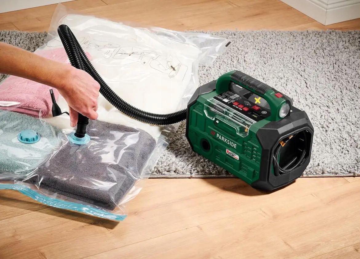 - Аккумуляторный компрессор и насос Parkside PKA 20-Li D3