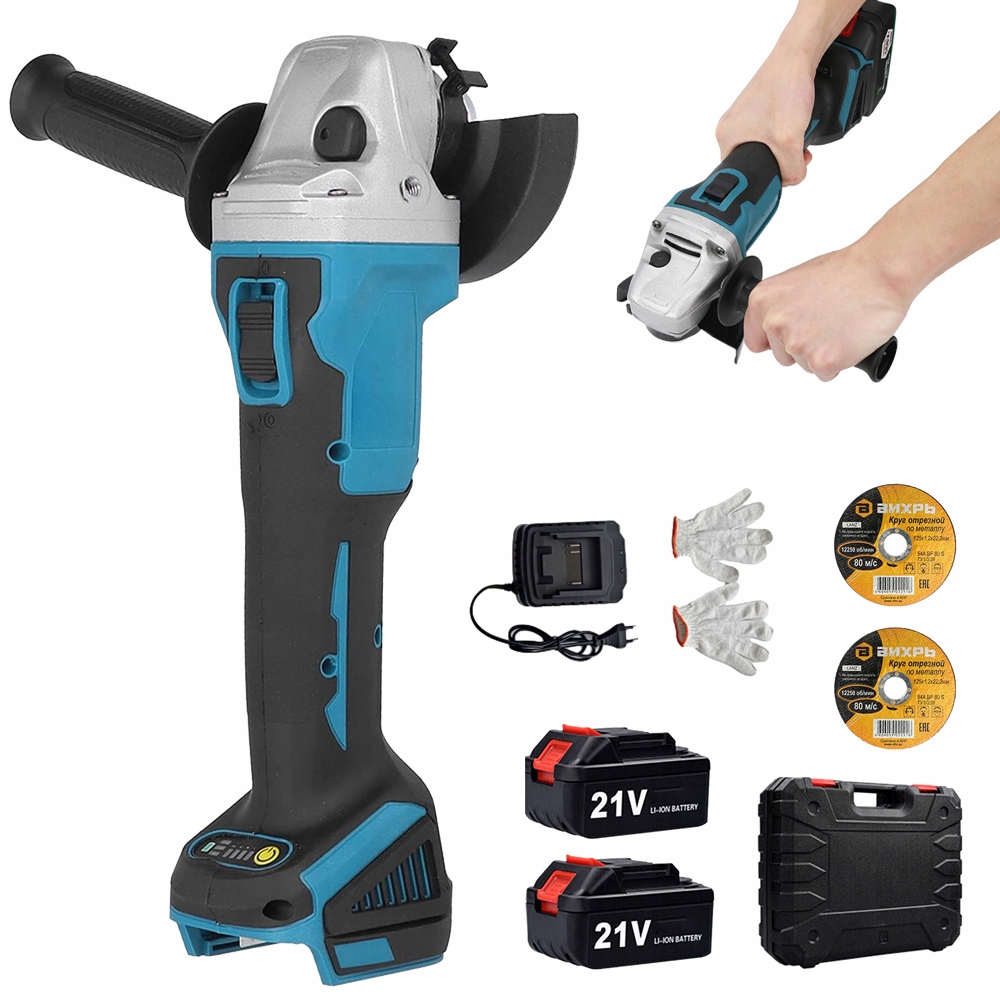 АКУМУЛЯТОРНА КУТОВА ШЛІФУВАЛЬНА МАШИНА БЕЗЩІТКОВА ГУМОВА РУЧКА 2x АКУМУЛЯТОРНИЙ ДИСК
