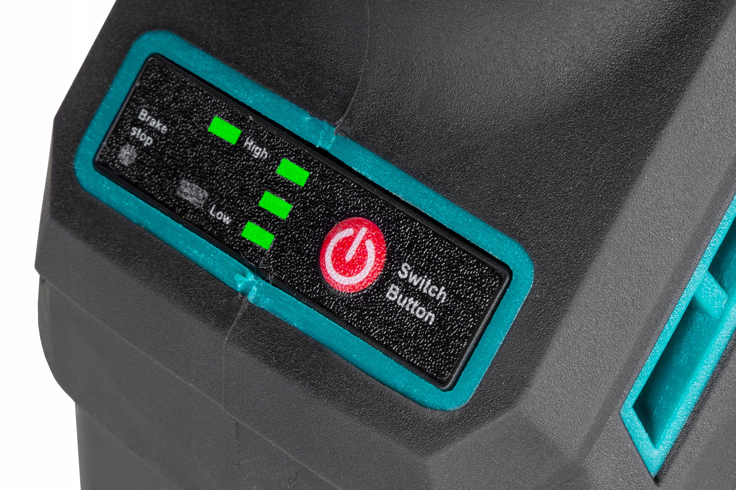 Вам больше не придется беспокоиться о том, что инструмент неожиданно выключится во время работы! Наша бензопила оснащена интеллектуальным электронным индикатором заряда аккумулятора, который информирует вас о текущем состоянии заряда, обеспечивая плавную и непрерывную работу.