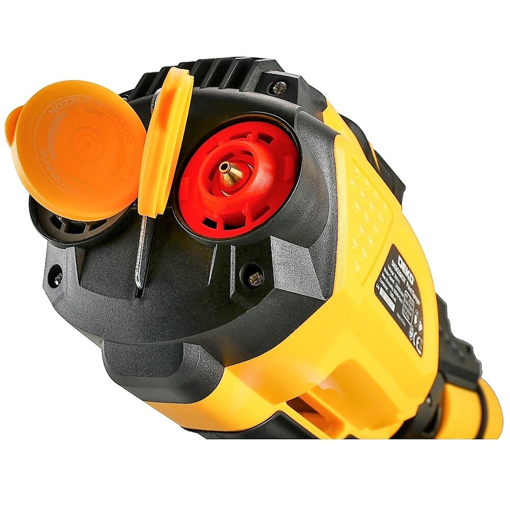Пистолет DEKO DKSG20K3Y типа HVLP работает по принципу распыления в облаке воздуха, расположенном в краске бак или b>другую жидкость. Аббревиатура HVLP означает «большой объем, низкое давление». Сжатый воздух, подаваемый в пистолет компрессором, направляется в сопло и бак с краской. Давление заставляет жидкость выталкиваться из резервуара. Распыленные частицы краски выбрасываются через сопло в воздушной рубашке.