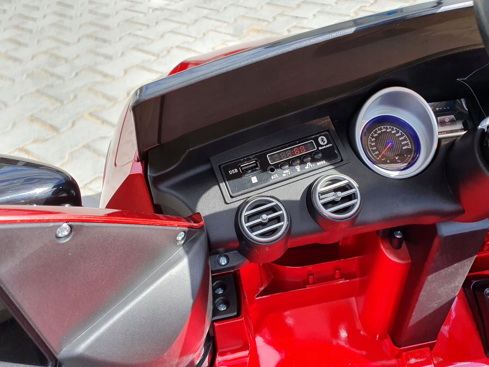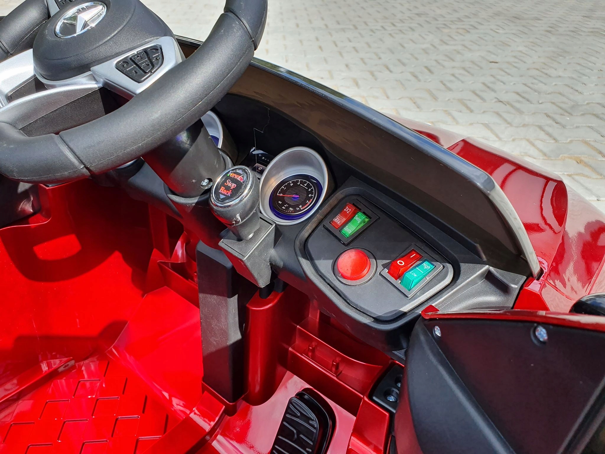Имеет удобные сиденья, оснащенные ремнем безопасности и пультом для родителей, позволяющим управлять автомобилем вперед и назад, а также влево и вправо.