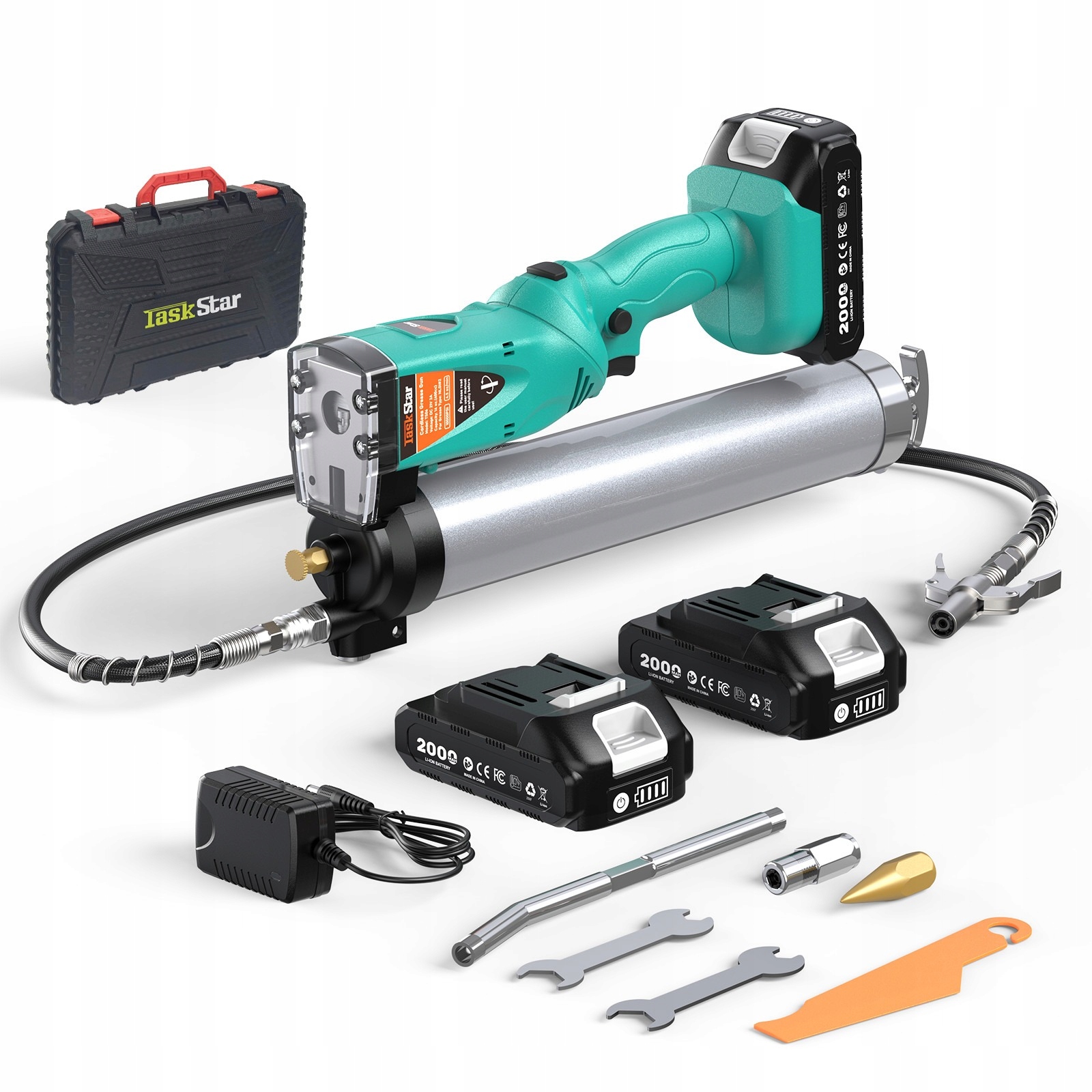 Беспроводной смазочный пистолет TaskStar: электрический смазочный шприц 2-в-1 с аккумулятором на 2 аккумулятора и зарядным устройством, давление 10 000 фунтов на квадратный дюйм, предназначен для применения в сельском хозяйстве, мастерских и тяжелой технике, совместим с батареями Makita 18 В.