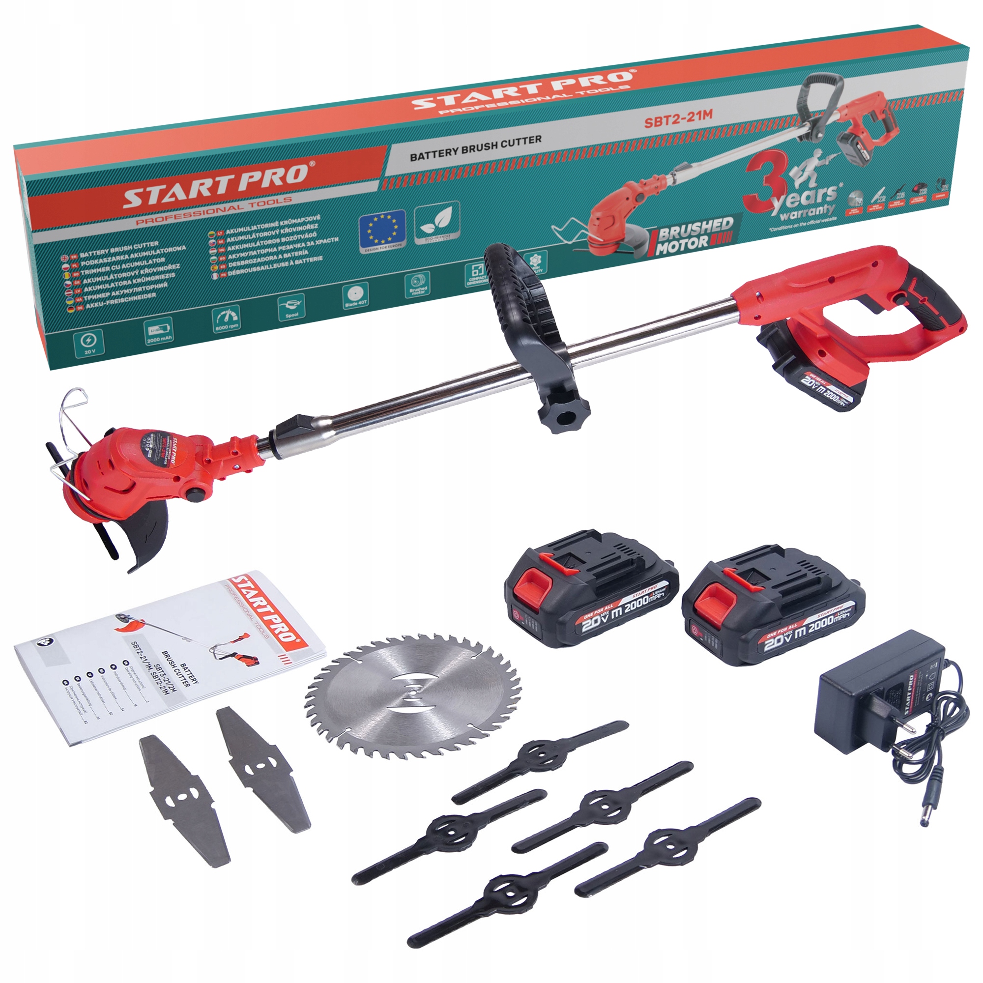 Универсальное использование - благодаря сменным лезвиям и режущим диску, устройство может обрабатывать как траву, так и сорняки, более плотную растительность или молодые кусты.