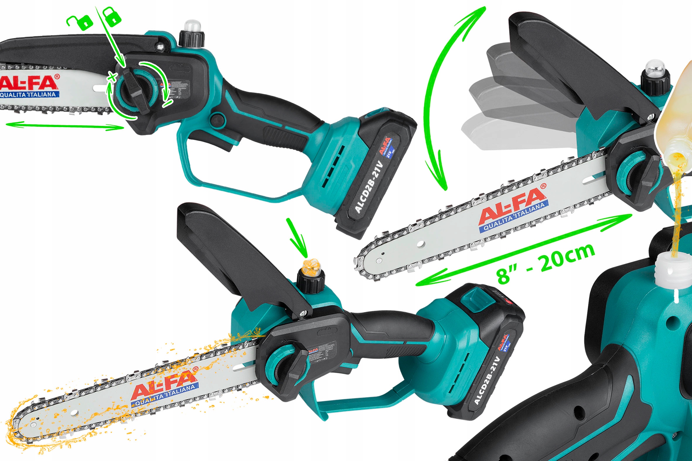 <ул>✅ 1. АККУМУЛЯТОРНАЯ ЦЕПНАЯ ПИЛА «ВЕТОЧНАЯ ПИЛА» ALCD2B-21V