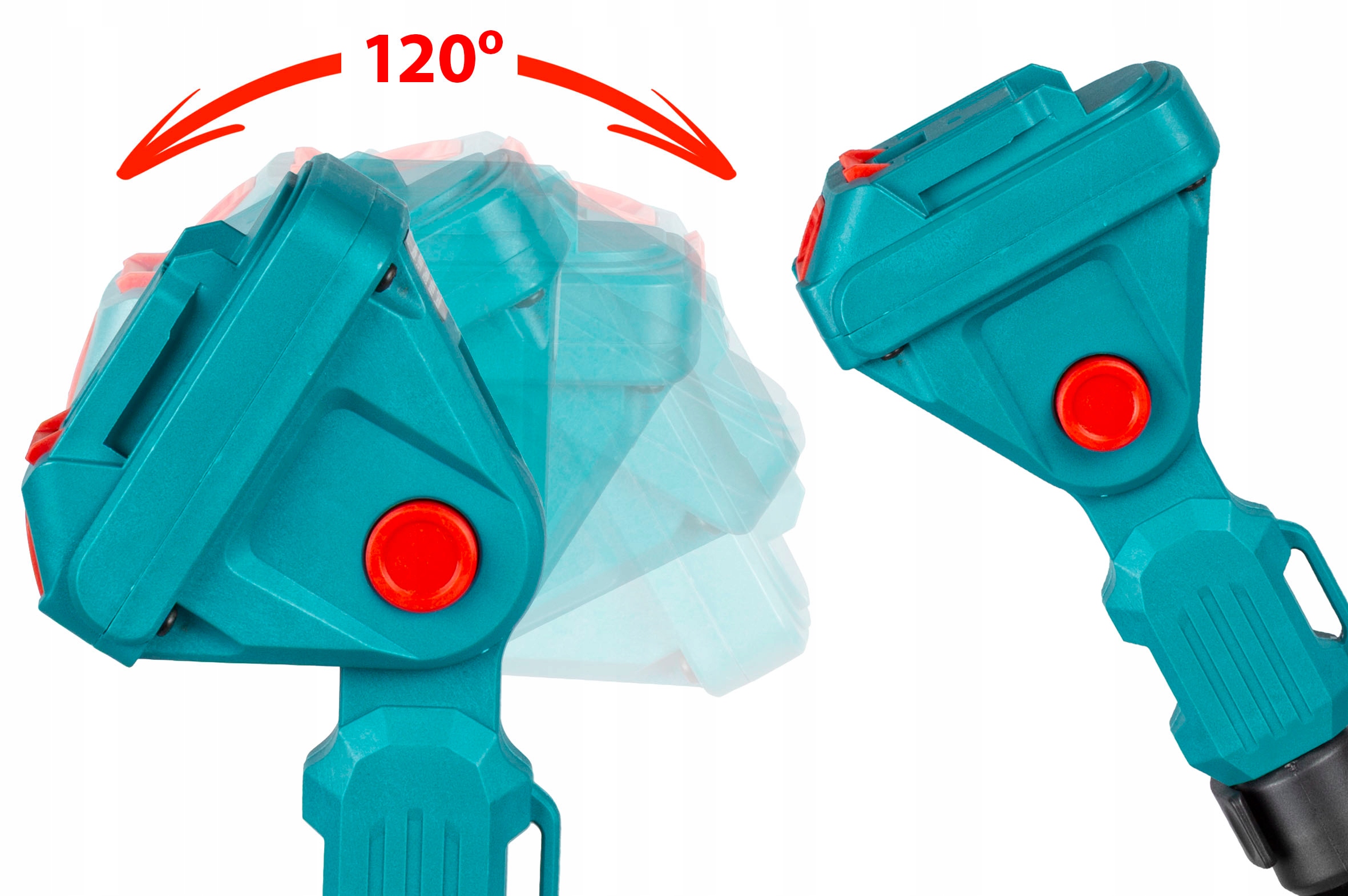 - Подвижная головка с диапазоном 120° позволяет резать под разными углами – без поворота всего инструмента.