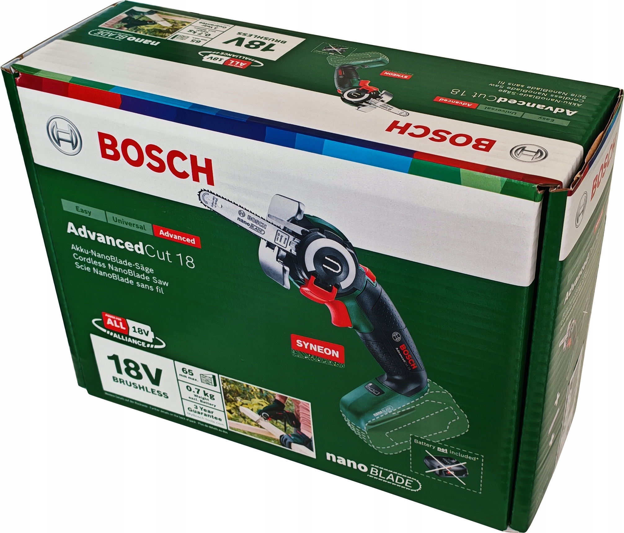 Бензопила Bosch — еще одна версия инструмента со специальным лезвием nanoBlade. Модель AdvancedCut 18 — это беспроводная версия с питанием от аккумулятора 18 В, которая также совместима с другими электроинструментами и садовыми инструментами серии Power for All Bosch. Пила оснащена бесщеточным двигателем, обеспечивающим высокую эффективность работы. Благодаря многофункциональной пиле AdvancedCut 18 можно резать древесину, ветки и пластик.