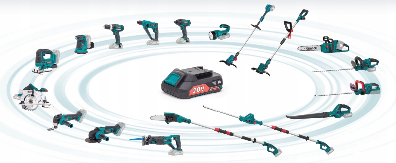 Устройство NAC AKUMULTISYSTEM 20V: линейка электроинструментов NAC и аккумуляторных садовых инструментов, питающихся от одного аккумулятора.