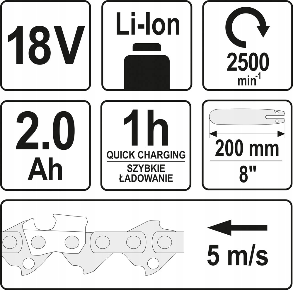 - Скорость хода цепи [м/с]: 5