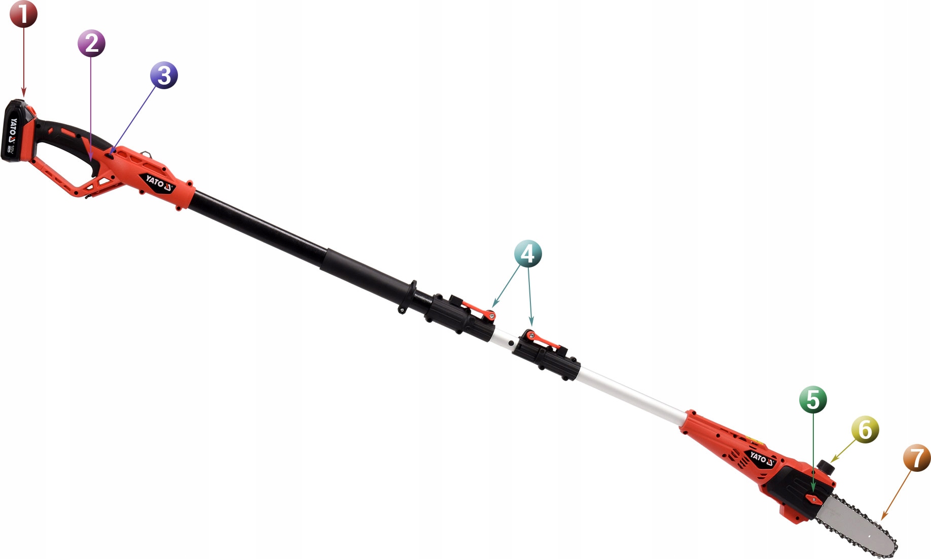 АКУМУЛЯТОРНА ПИЛА ТЕЛЕСКОПІЧНОЇ СТРІЛИ YATO 18V 2Ah