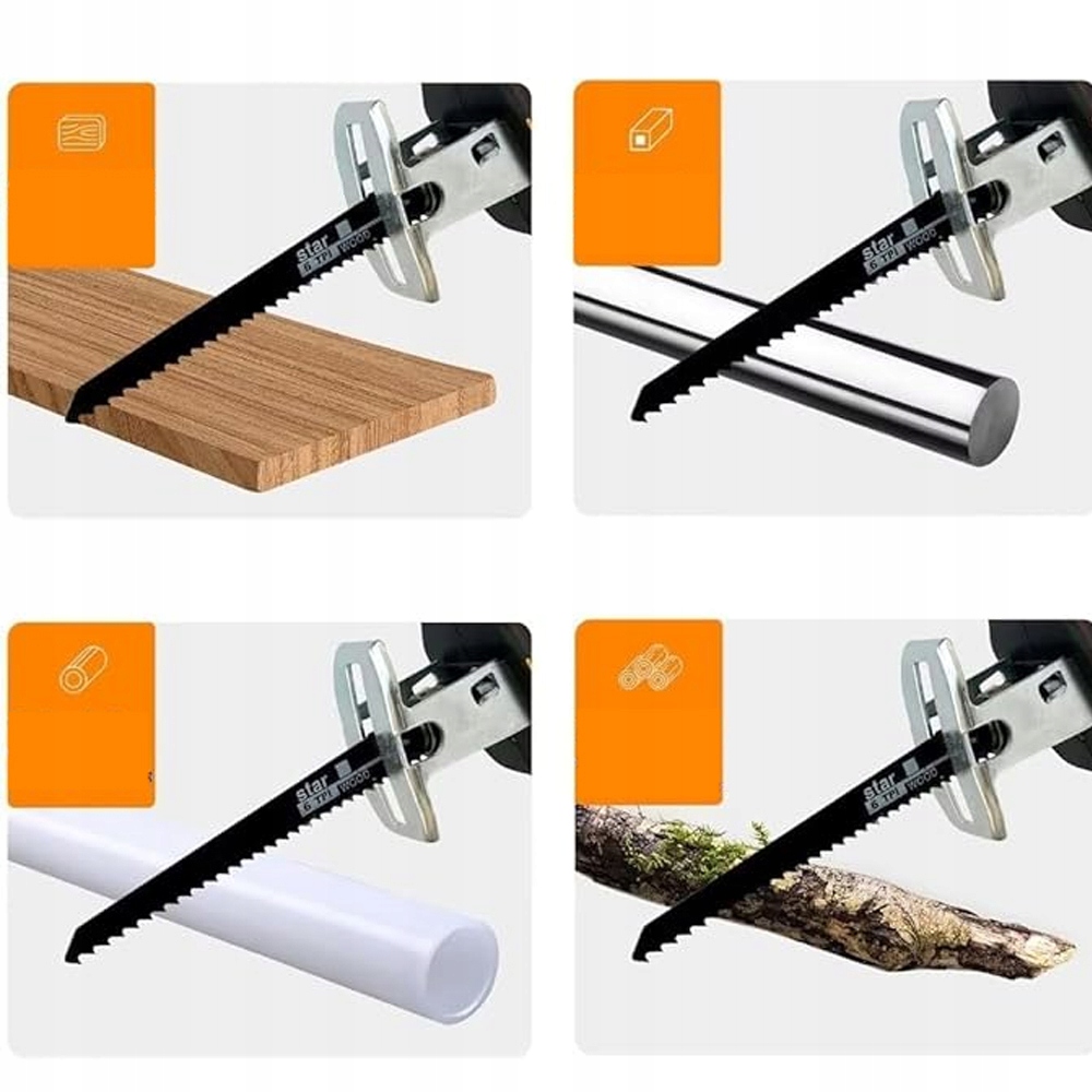 - Поставляется с 4 лезвиями для удовлетворения всех ваших потребностей в резке, поэтому вы можете легко переключаться между всеми лезвиями, чтобы резать древесину, ветки деревьев, трубы ПВХ, стекловолокно, тонкую сталь и многое другое.