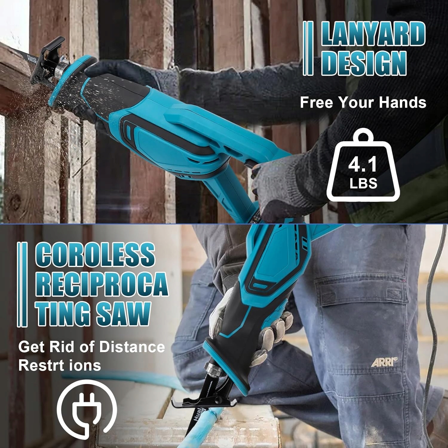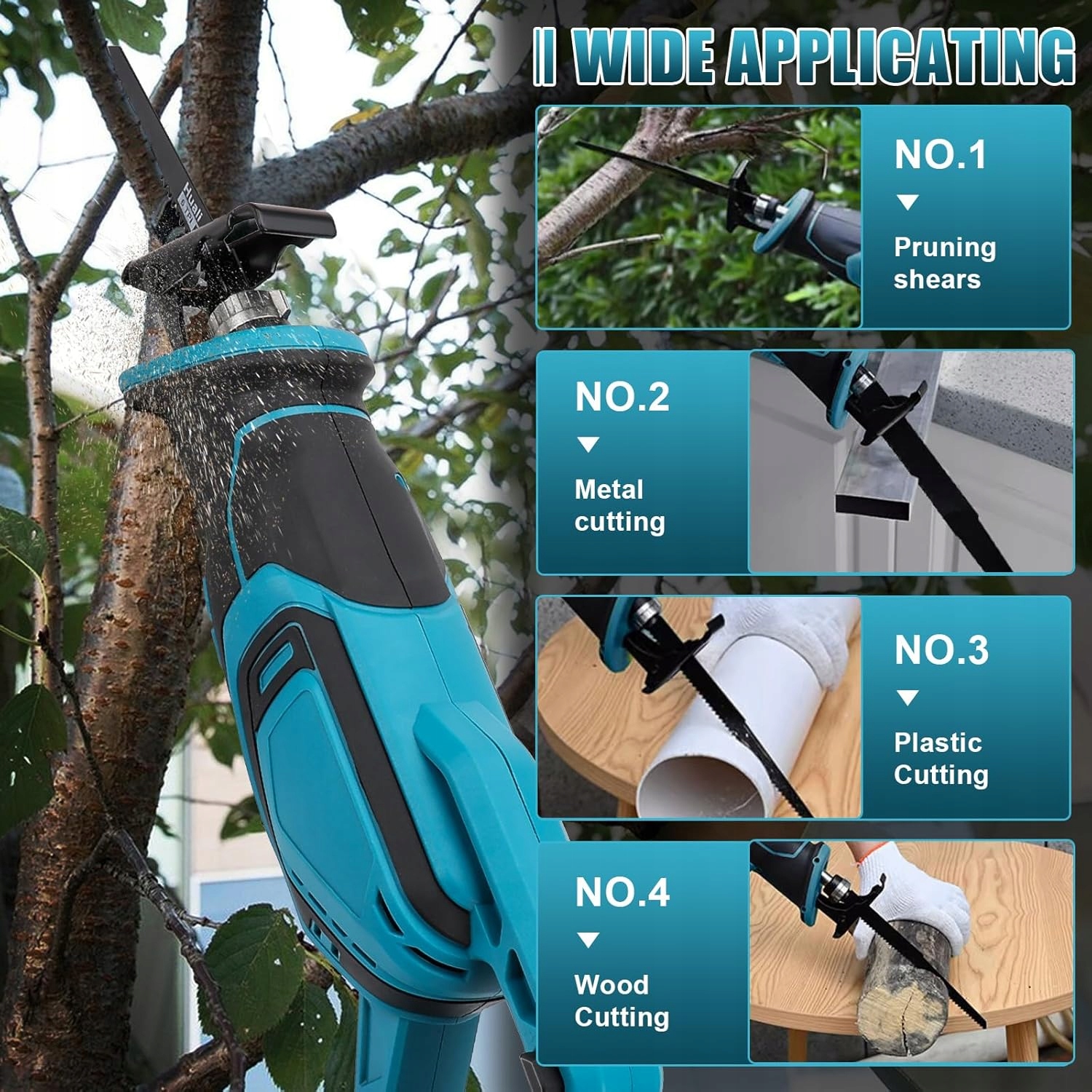 - МОЩНАЯ РЕЦИМЕРНАЯ ПИЛА: сабельная пила, оснащенная четырьмя лезвиями, может легко резать различные материалы, включая древесину, трубы, деревья, пластик, металл и другие предметы. Он способен выполнять множество задач по резке, удовлетворяя все ваши потребности.