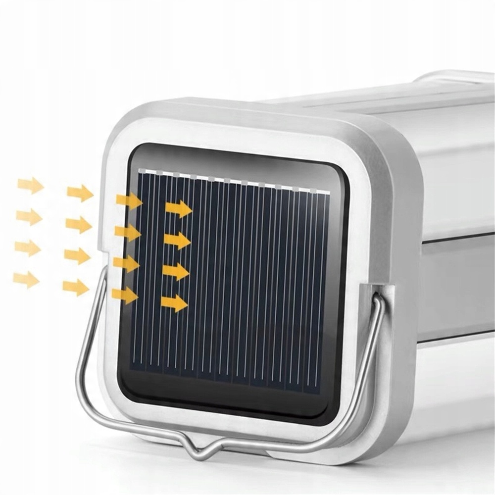 Фонарик имеет встроенную солнечную панель, которая, помимо традиционного подключения к электричеству через кабель, позволяет заряжать устройство с помощью солнечной батареи. панель расположена сбоку от фонаря. Благодаря этому мы можем заряжать наше устройство в любых условиях, даже без доступа к электрической розетке. Эта функция идеально подходит для поездок на природу, кемпинга, пеших прогулок и в любом месте, где нет электричества.