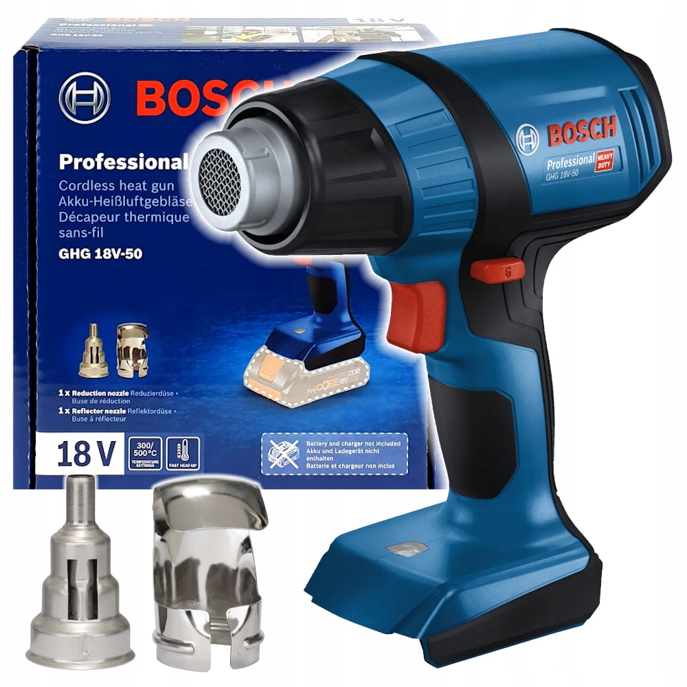 Благодаря использованию эффективных аккумуляторов Bosch на 18 В он обеспечивает превосходную мобильность и гибкость, что делает его подходящим инструментом на крупных строительных площадках без доступа к постоянному источнику питания. Благодаря возможности работы на одном из двух уровней рабочая температура колеблется от 300 до 500 °С. Инструмент оснащен светодиодной подсветкой и поставляется с набором насадок (две штуки) в системном кейсе, обеспечивающем безопасность и удобство транспортировки.