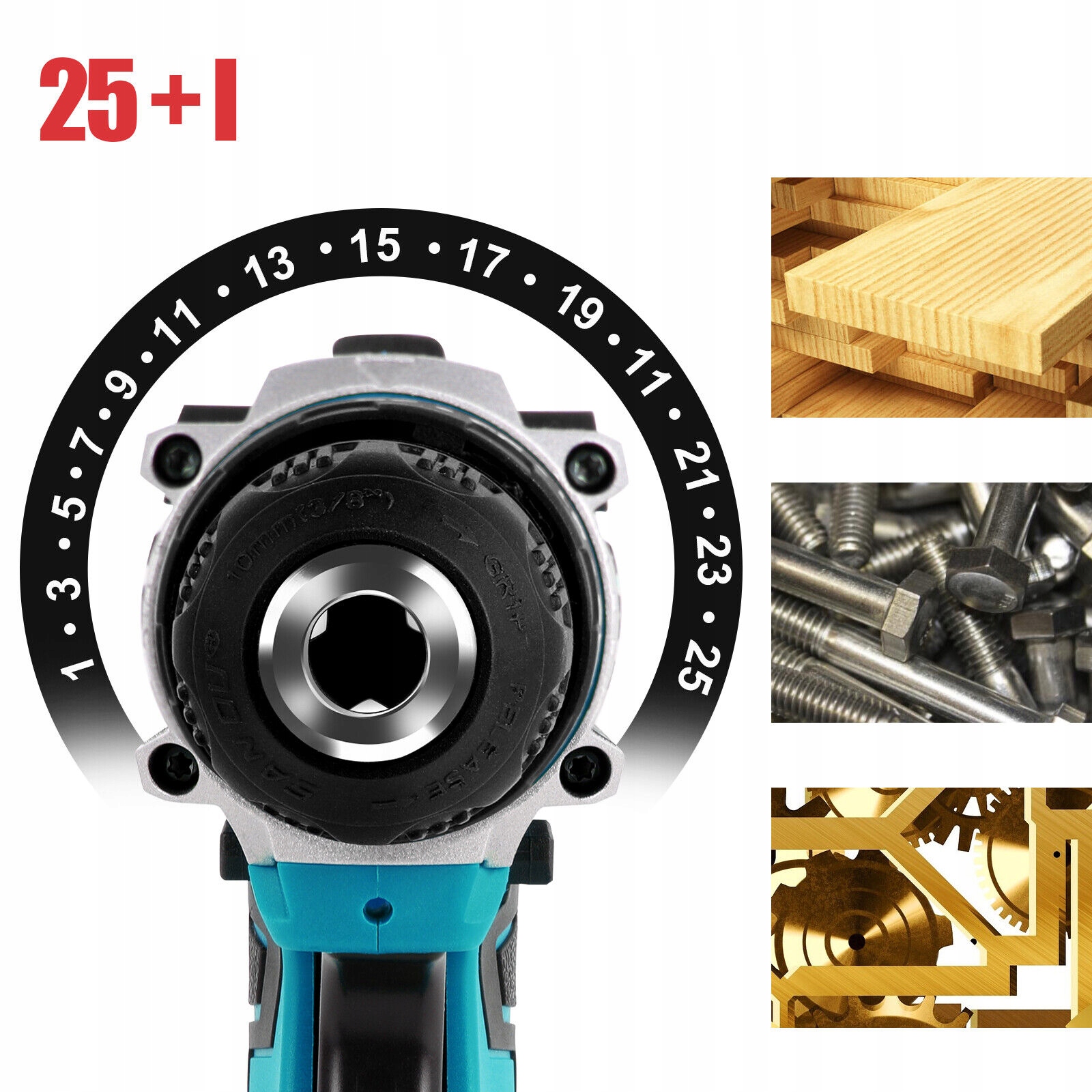 ➡️ Аккумуляторная дрель-шуруповерт с регулировкой крутящего момента25+1, что позволяет точно контролировать сверление в дереве, металле, пластике и т. д. Максимальный крутящий момент достигает 25 Нм. , идеально подходит для быстрого завинчивания и легкого сверления при ремонте, сборке в домашних условиях и на стройплощадках.
