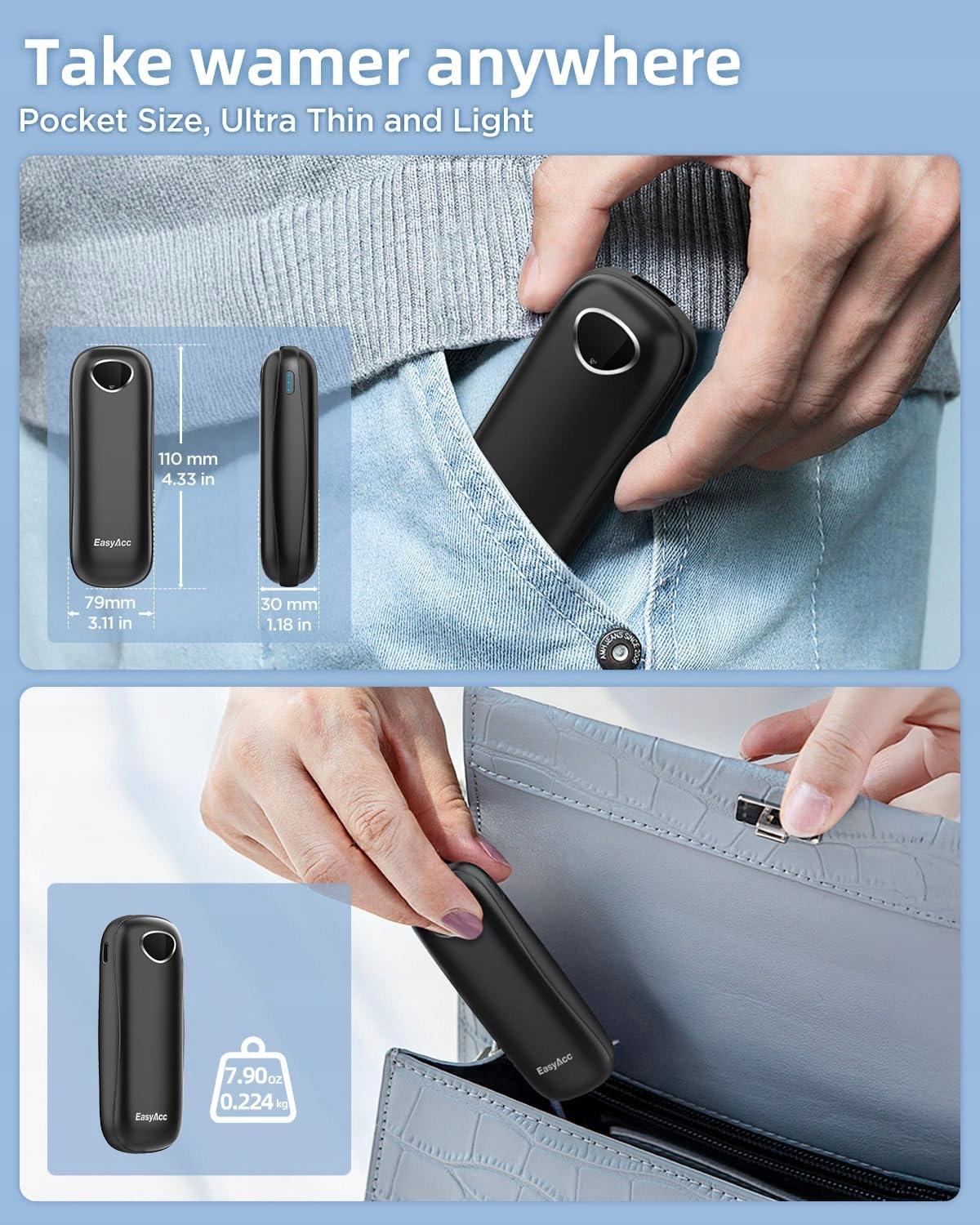 АККУМУЛЯТОРНЫЕ грелки для рук 10000 мАч, 3 уровня нагрева, USB C POWERBANK
