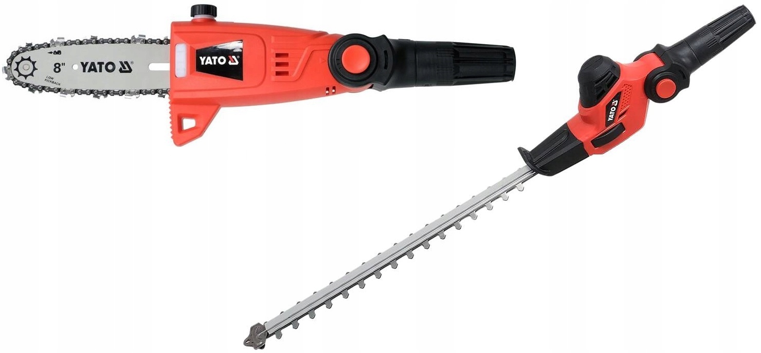 Устройство совмещает в себе две функции – в зависимости от установленной головки это секатор для обрезки ветвей или кусторез. Замена головки секатора на кусторез не требует инструментов или применения значительной силы. Ручка изготовлена из композита и алюминия, что делает ее легкой, прочной и жесткой. Устройство работает более 1,5 часов от аккумулятора YT-82845 (6 Ач). Подходит для всех аккумуляторов системы YATO 18 В.