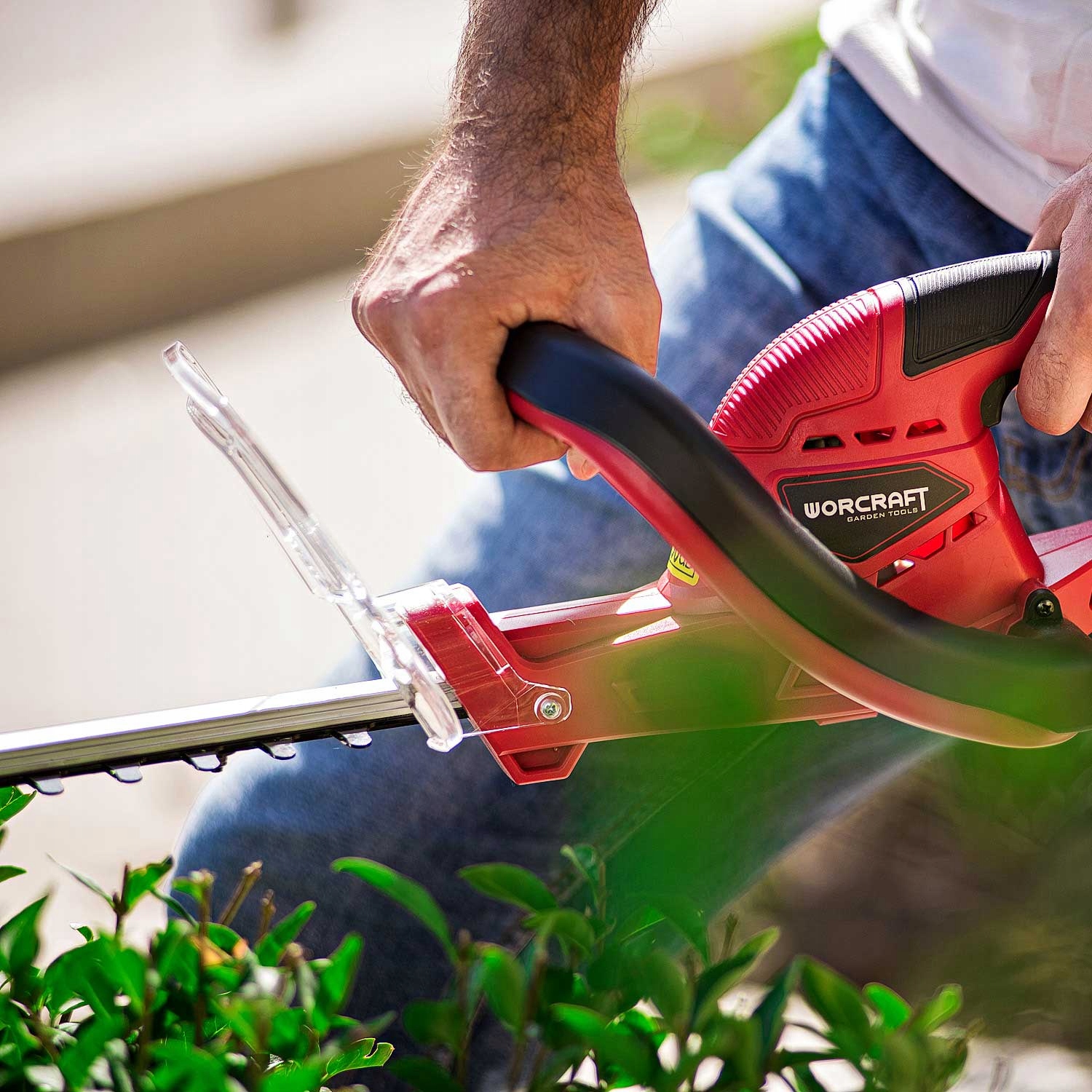 Ножницы оснащены длинным и прочным лезвием, обеспечивающим максимальную длину стрижки 510 мм. Благодаря этому вы легко справитесь с более крупными живыми изгородями, высокими туями или широкими кустарниками.