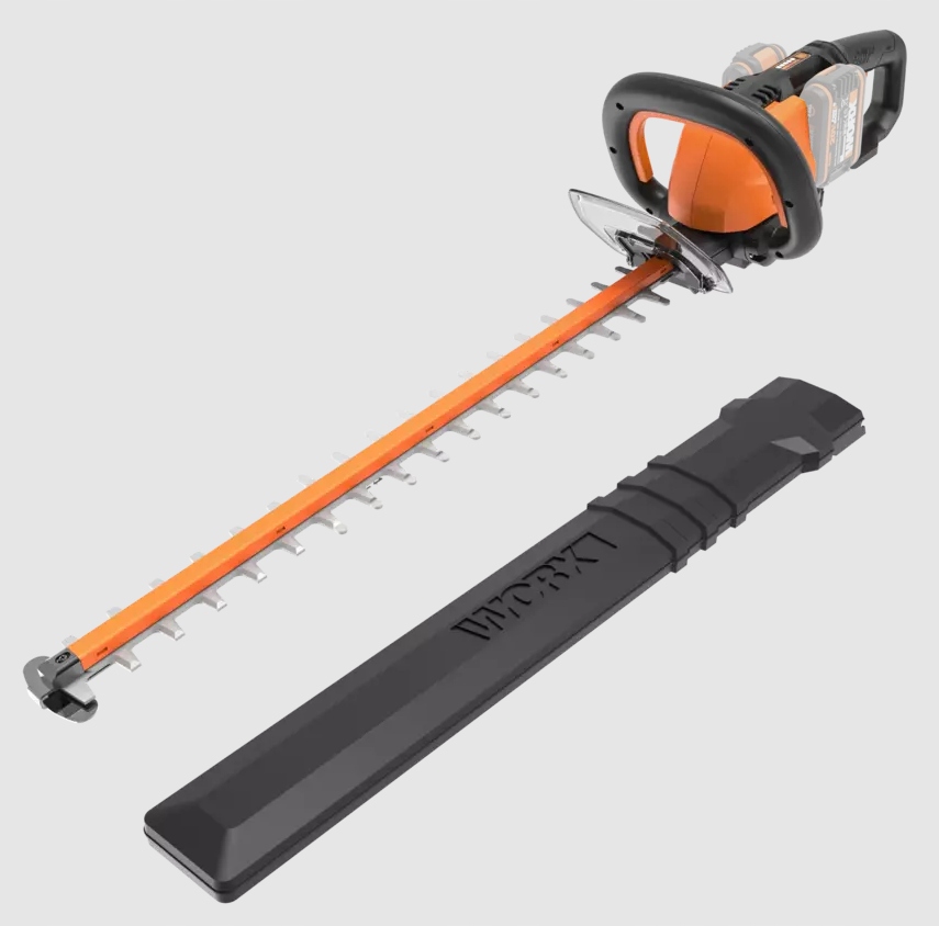 Две батареи PowerShare обеспечивают 40 В чистой энергии. Аккумуляторный триммер для живой изгороди Worx WG284E способен обрезать ветки толщиной до 27 мм. Его длина действия составляет 60 см, а ручка позволяет комфортно работать во всех положениях.