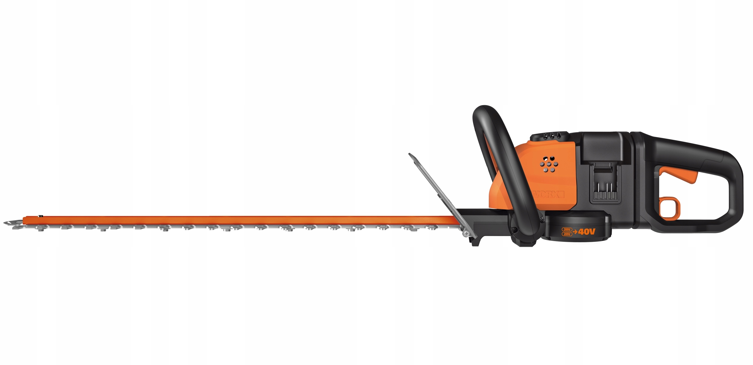 Worx 40V PowerShare WG284E обладает мощностью и производительностью, позволяющими обрезать ветки толщиной до 27 мм. Сверхдлинные лезвия длиной 60 см, обработанные лазером, облегчают работу по обрезке больших объемов. Вращающаяся на 180 градусов ручка обеспечивает удобную эргономику под любым рабочим углом — вертикально или горизонтально.