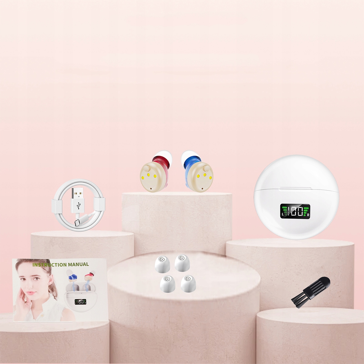 👂👂1 пара миниатюрных невидимых внутриушных слуховых аппаратов, цифровой усилитель голоса, 300 мАч, с чехлом для зарядки и цифровым дисплеем