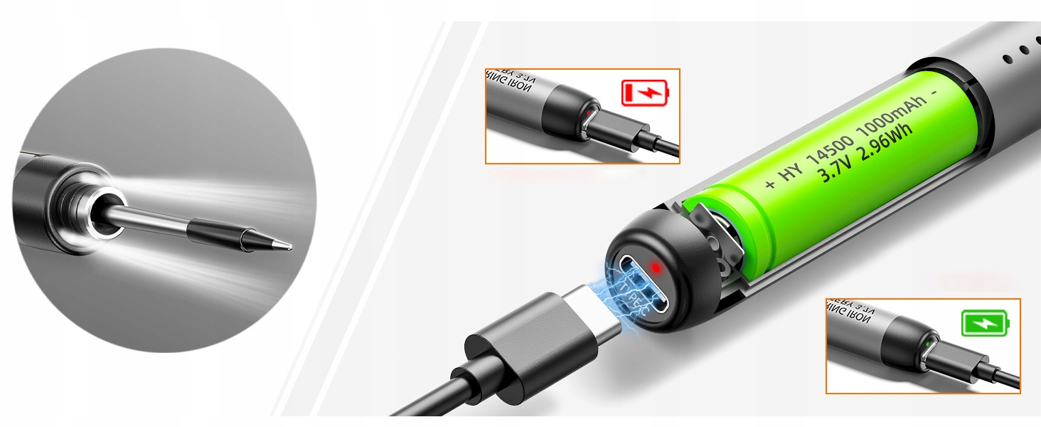 Этот набор USB-паяльника обеспечивает до 30 минут непрерывной работы при полной зарядке, что идеально подходит для обычных задач пайки и экстренного ремонта.