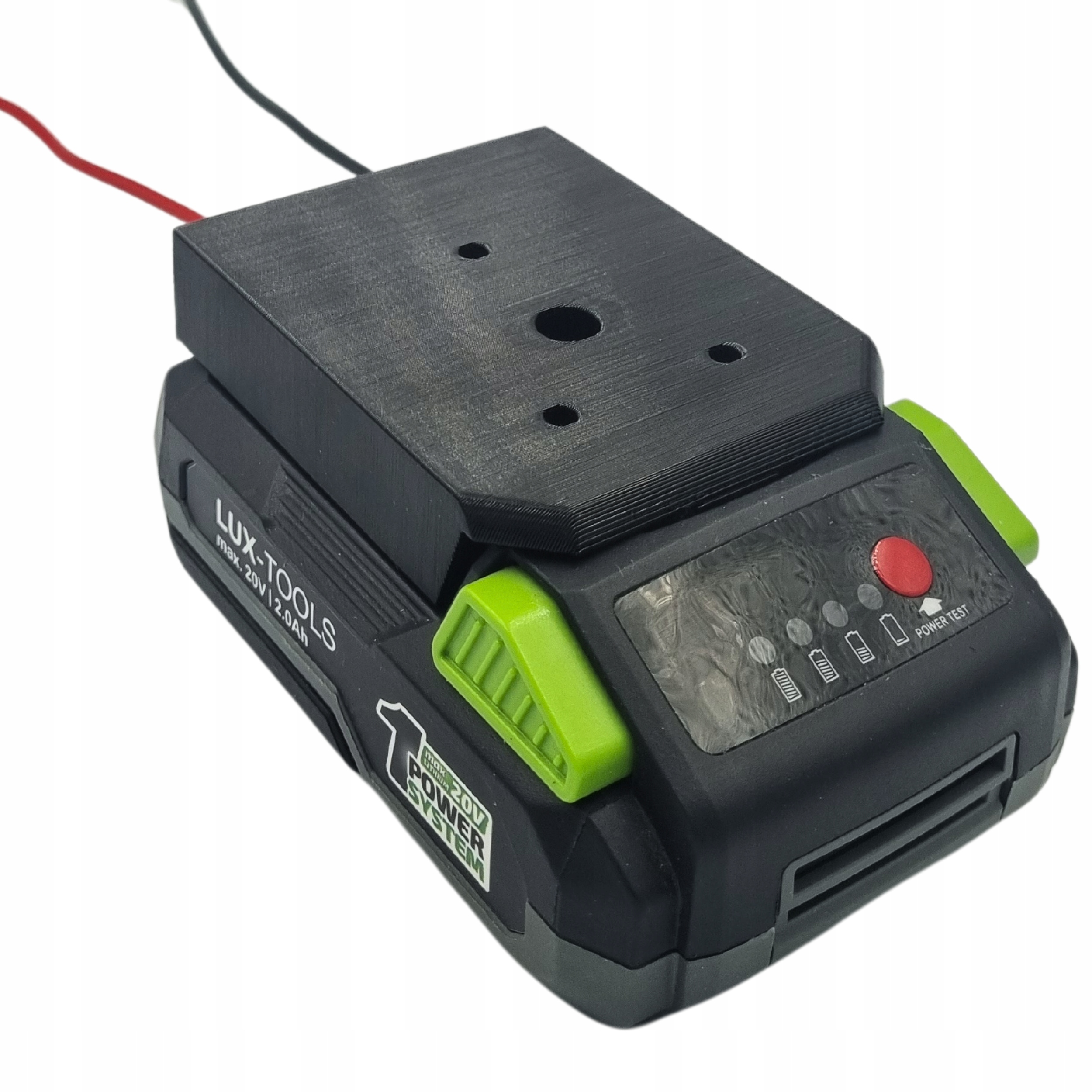 Адаптер с кабелями для аккумуляторов Lux-Tools 20 В создан для любителей DIY и профессионалов, нуждающихся в надежных решениях. Адаптер изготовлен из прочного материала PET-G с использованием технологии 3D-печати, что обеспечивает его прочность и долговечность (в отличие от адаптеров из PLA).
