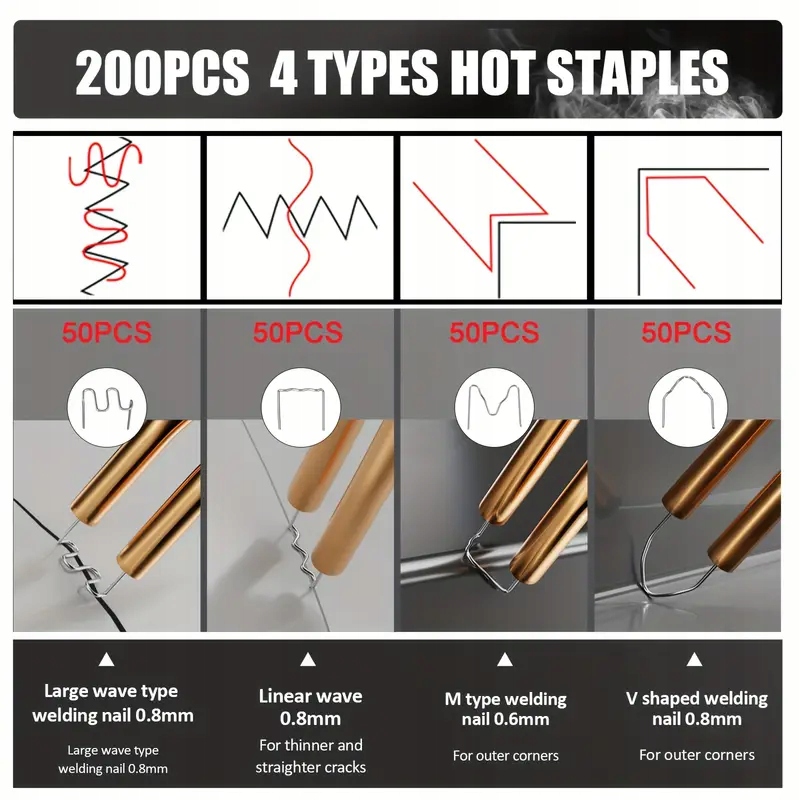 <р>1. Современный дизайн, традиционная ручка, более удобная в использовании. Умеет хорошо обращаться с деталями и точнее производить ремонт. <р>2. Сварная трубка из чистой меди, ручка с защитой от ожогов, легкая и компактная, быстрый нагрев за 3–5 секунд и прочная сварка. <р>3. Оснащен ЖК-дисплеем, регулировкой мощности, отображением уровня заряда батареи и поддержкой функции зарядки через USB. <р>4. Многофункциональность: сварка пластика, сварка трещин, термическая резка обеспечивает более безопасную работу одной рукой, экономию времени и энергии и повышение эффективности.