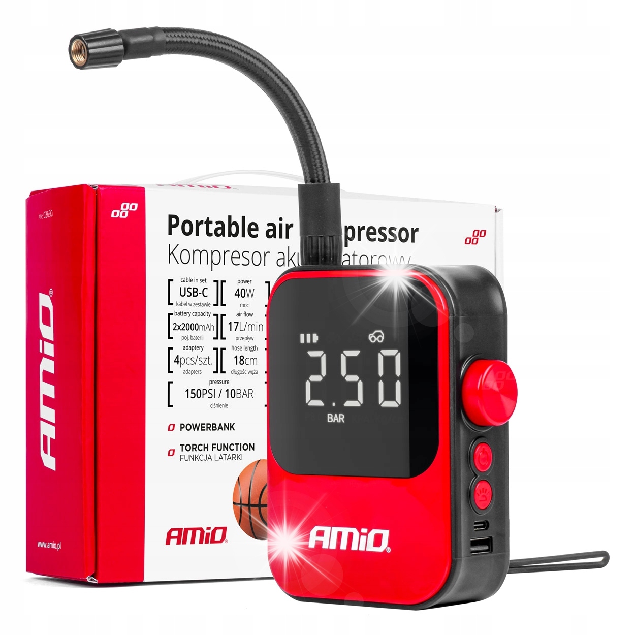 Беспроводной автомобильный компрессор, электрический велосипедный насос, блок питания ACOMP-20 AMIO-03690