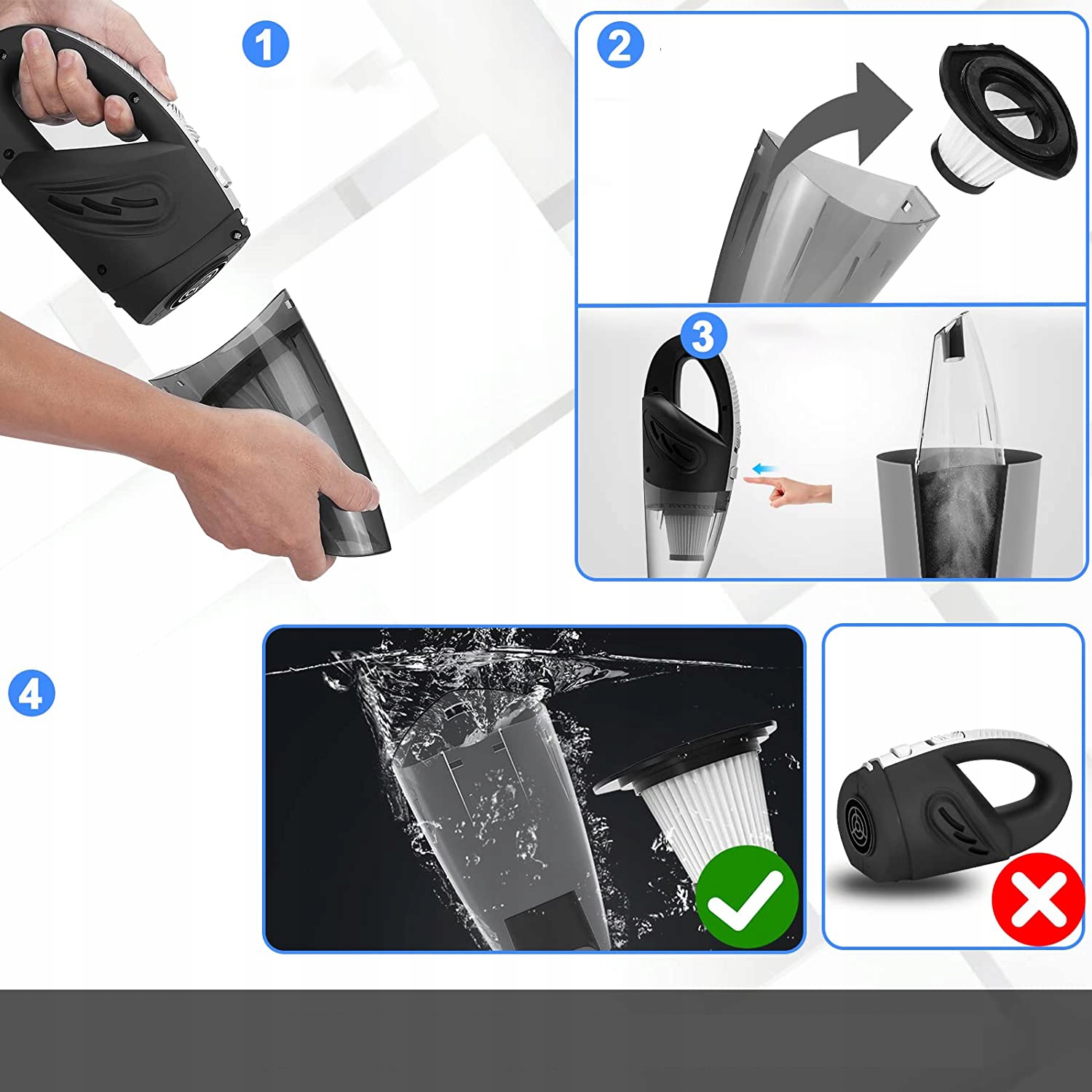 - Тележка для ручного пылесоса оснащена улучшенным фильтром с использованием высококачественного нейлонового фильтра, который выдвигается. срок службы фильтра,