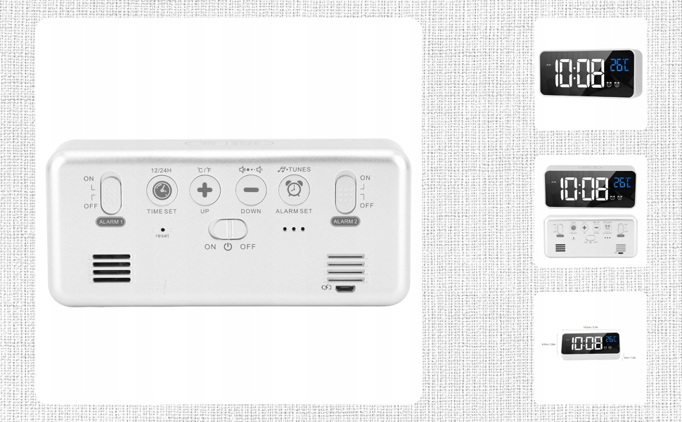 - Большой экран: будильник имеет большой дисплей, цифры четкие и очень легко читаются даже издалека и под любым углом.