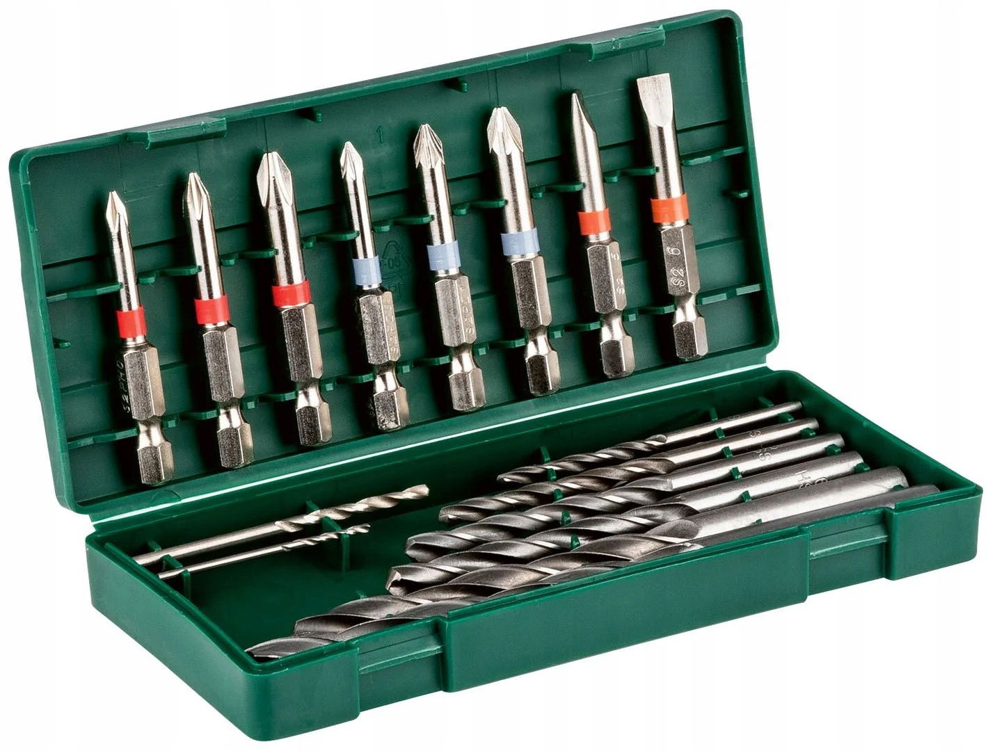 В комплект входят: 8 бит и 8 сверл HSS + кейс.