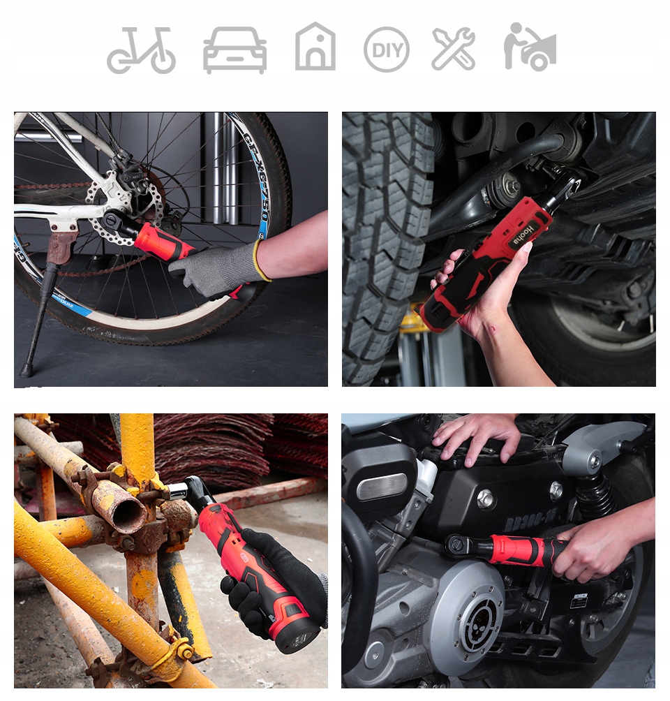 Для любой ситуации! Беспроводная конструкция имеет важное значение, и ударные гайковерты Hoha можно использовать в самых разных местах, обычно в помещении или на открытом воздухе. Он идеально подходит для ремонта автомобилей, механического ремонта, ремонта автомобилей, замены шин, перестановки шин и домашнего обслуживания, затягивания гаек и ослабления болтов. Этот ударный гайковерт разработан с учетом повседневных рабочих ситуаций.