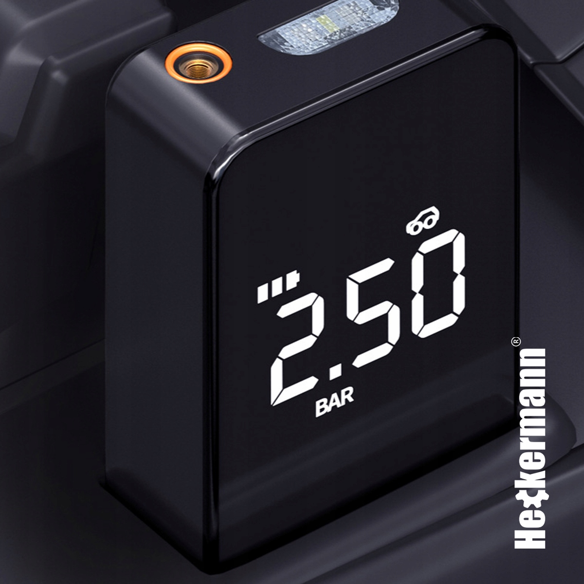 - Насос электромобиля имеет специальный датчик, с помощью которого можно точно установите подходящее давление в шинах b>.