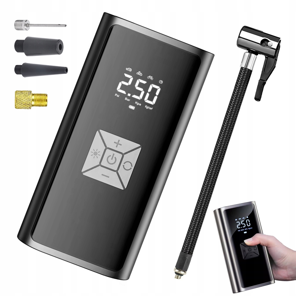 - Этот электрический воздушный насос поддерживает 3 типа натяжных устройств (бар, бар, кПа) и четыре режима работы, поддерживая накачивание мячей, велосипедных шин, мотоциклетных шин и автомобильных шин.
