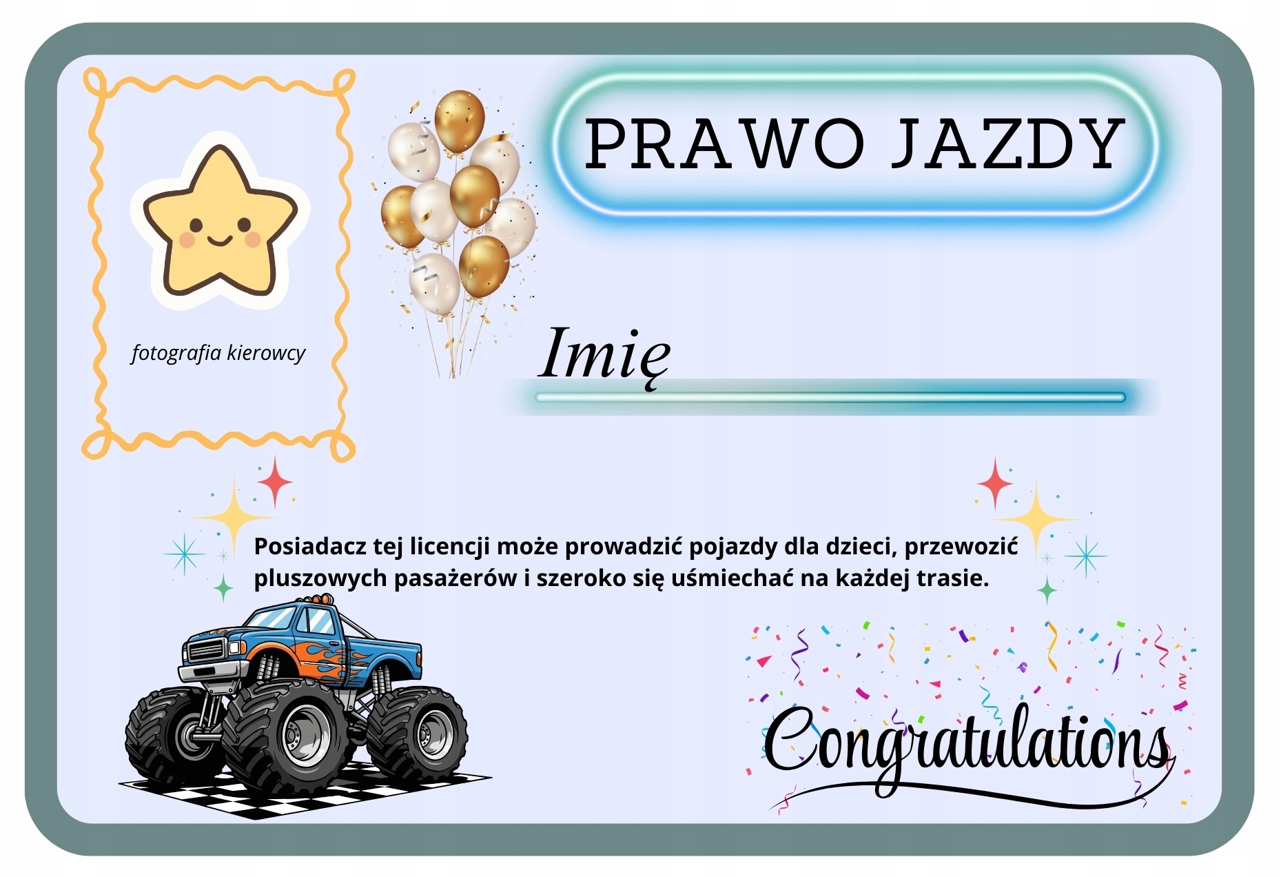 К каждому транспортному средству мы добавляем уникальные, красочные водительские права с именем ребенка (имя ребенка укажите в сообщении продавцу!) - подарок, который сразу вызывает восторг и широкую улыбку.