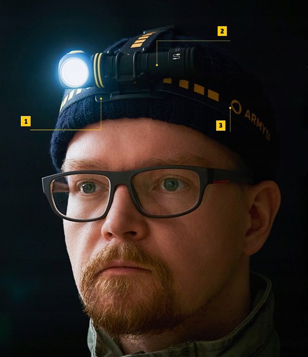 2⃣ ОДНОЕ -ПРАВЛЕНИЕ Корпус без длинных проводов, экстренных резиновых разъемов или ненужных элементов. Закрепление на лбу , две мягкие гибкие эластичные полосы, регулируемый размер.
