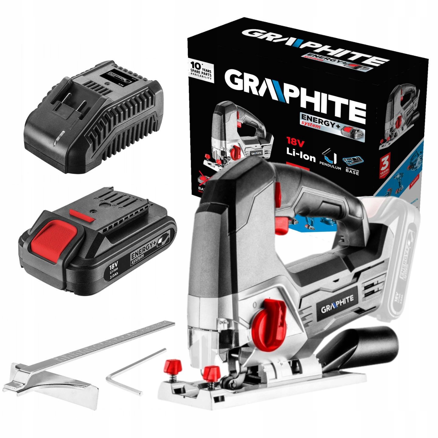 - Лобзик аккумулятор Energy+ 18В Li-Ion ГРАФИТ 58G011