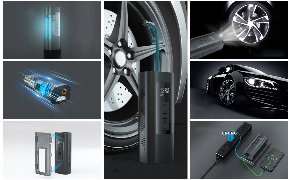✅3. Этот портативный воздушный компрессор можно использовать в качестве аккумулятора⭐: у него есть порт USB, который может выступать в качестве аккумулятора для зарядки вашего смартфона в чрезвычайной ситуации. В комплект также входит прочная сумка для хранения, позволяющая удобно хранить и транспортировать компрессор. Отличный выбор подарка для друзей и семьи. Ваш лучший друг в пути.
